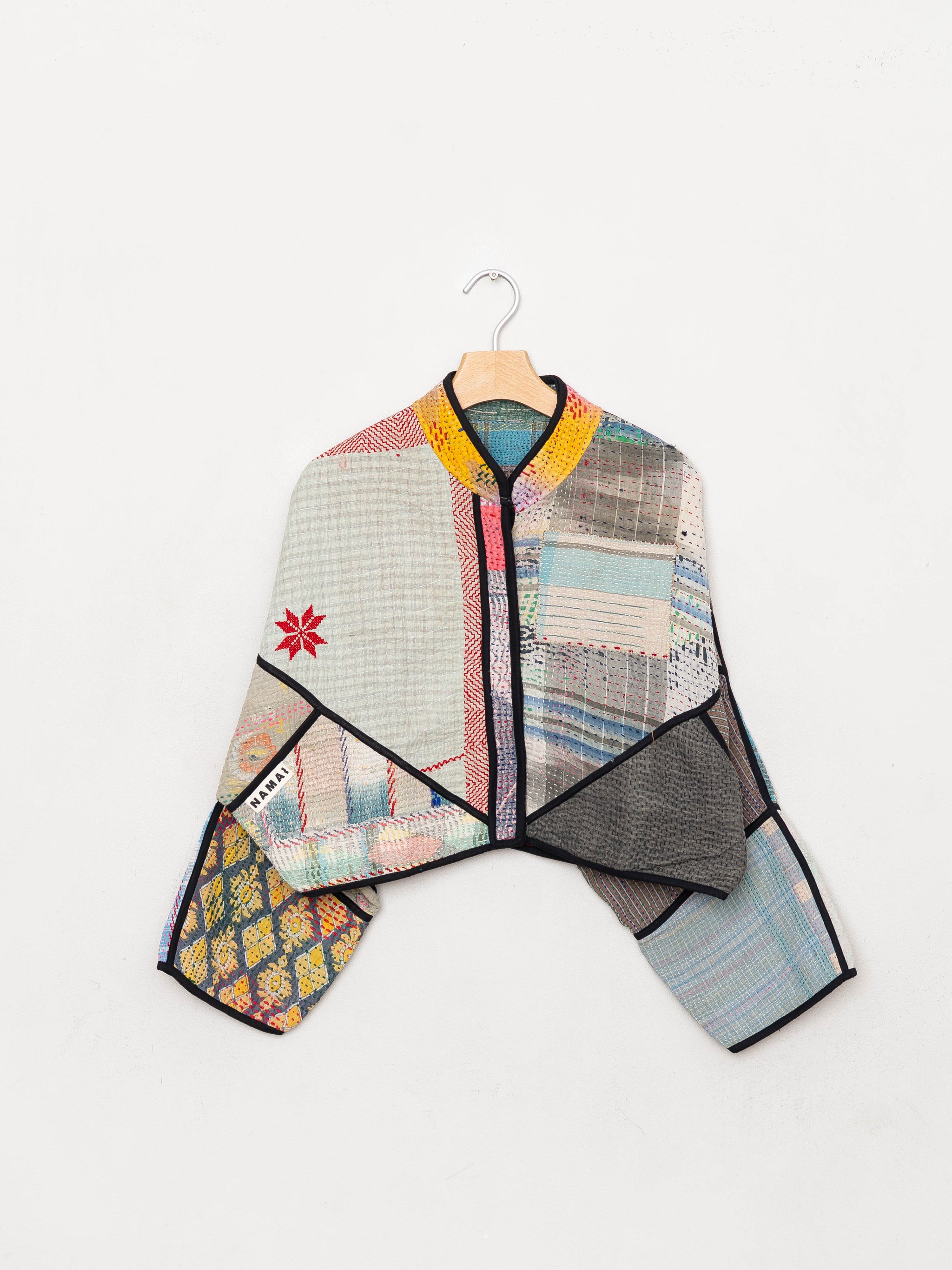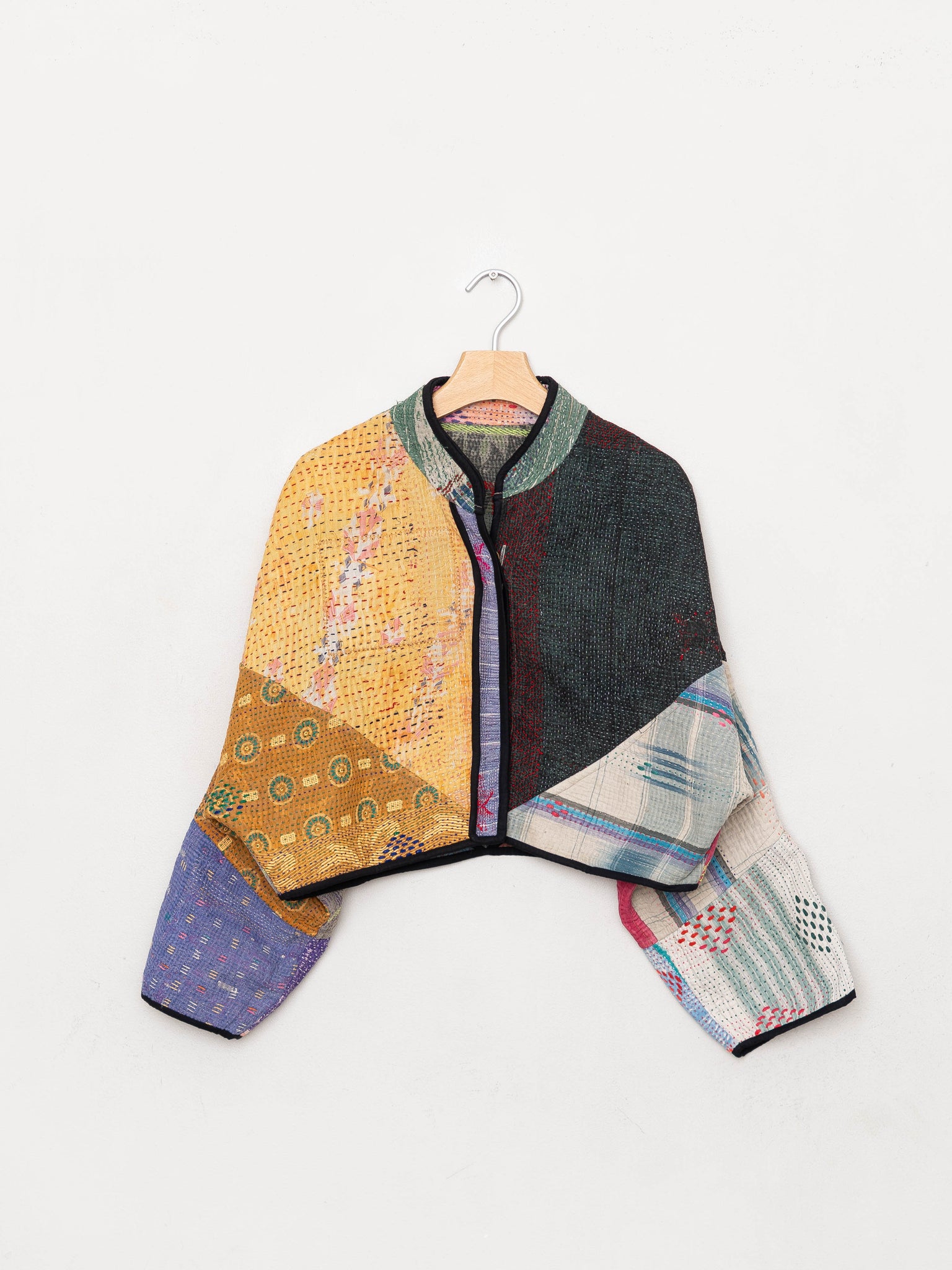 The Kaira Cropped Quilted Patchwork Kantha Jacket