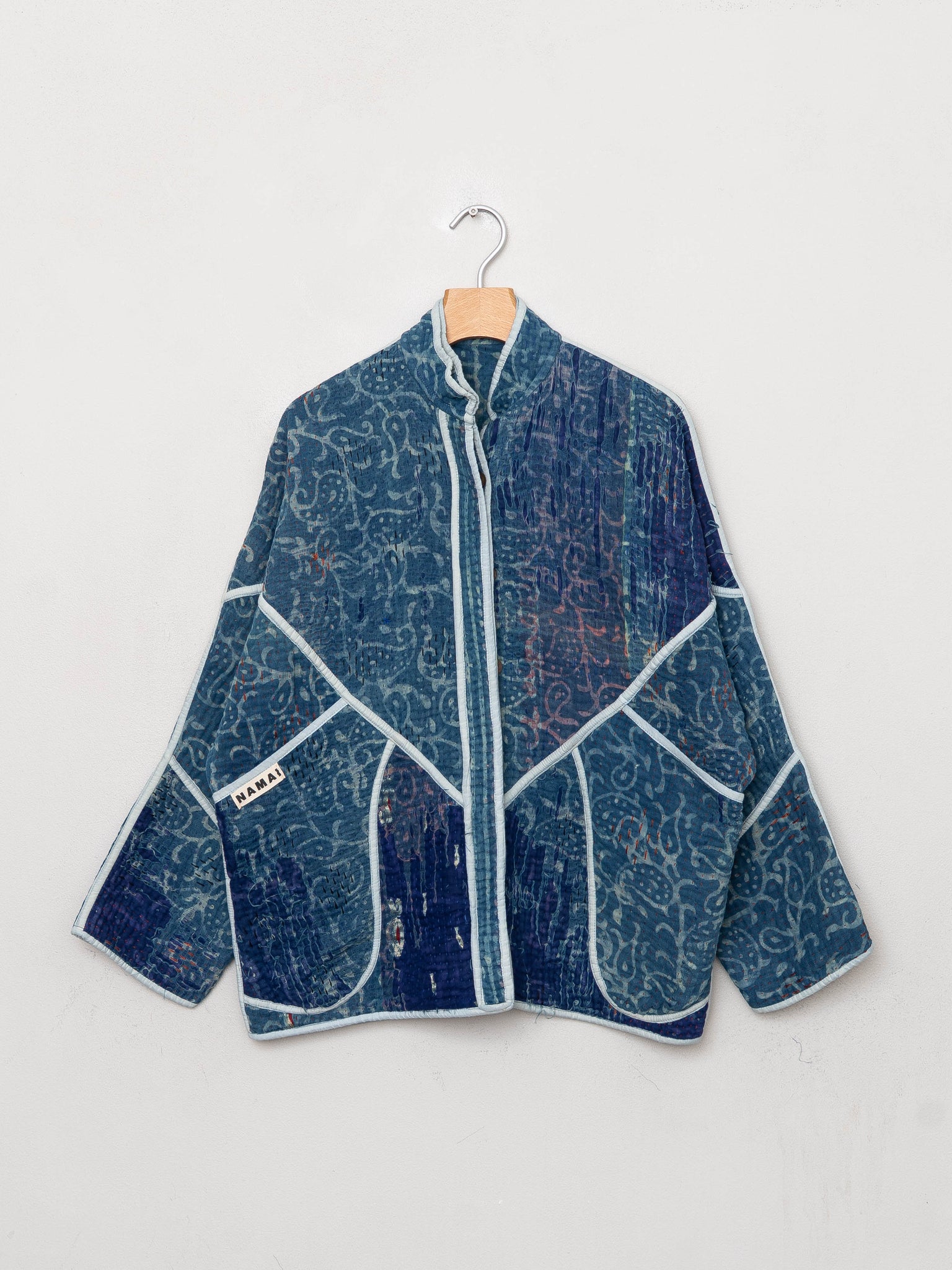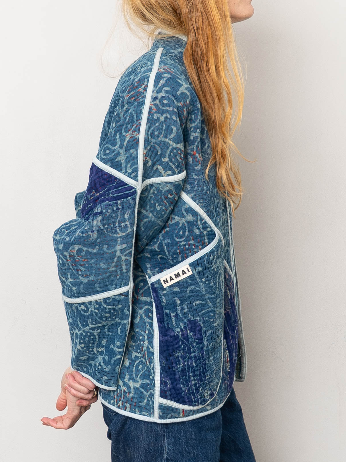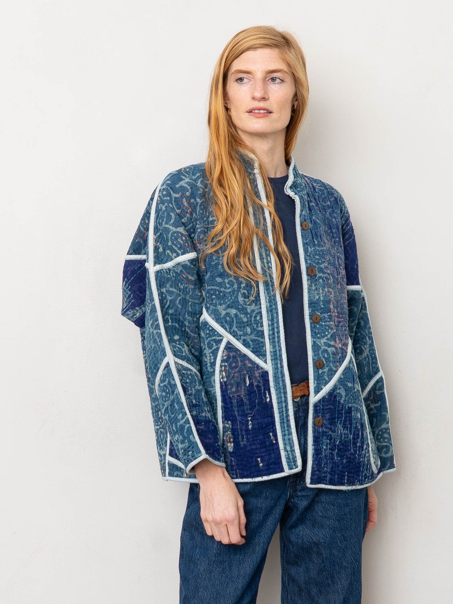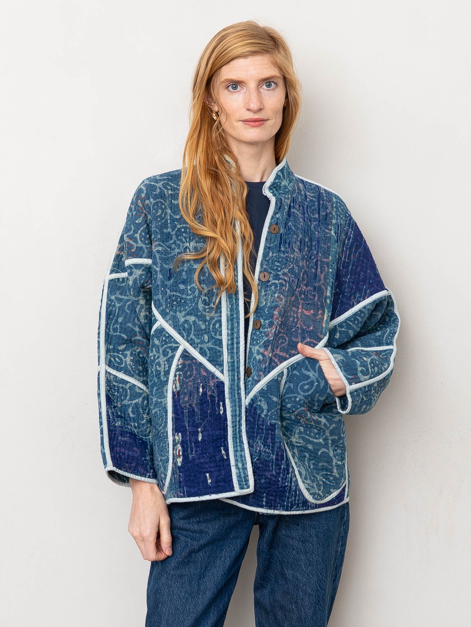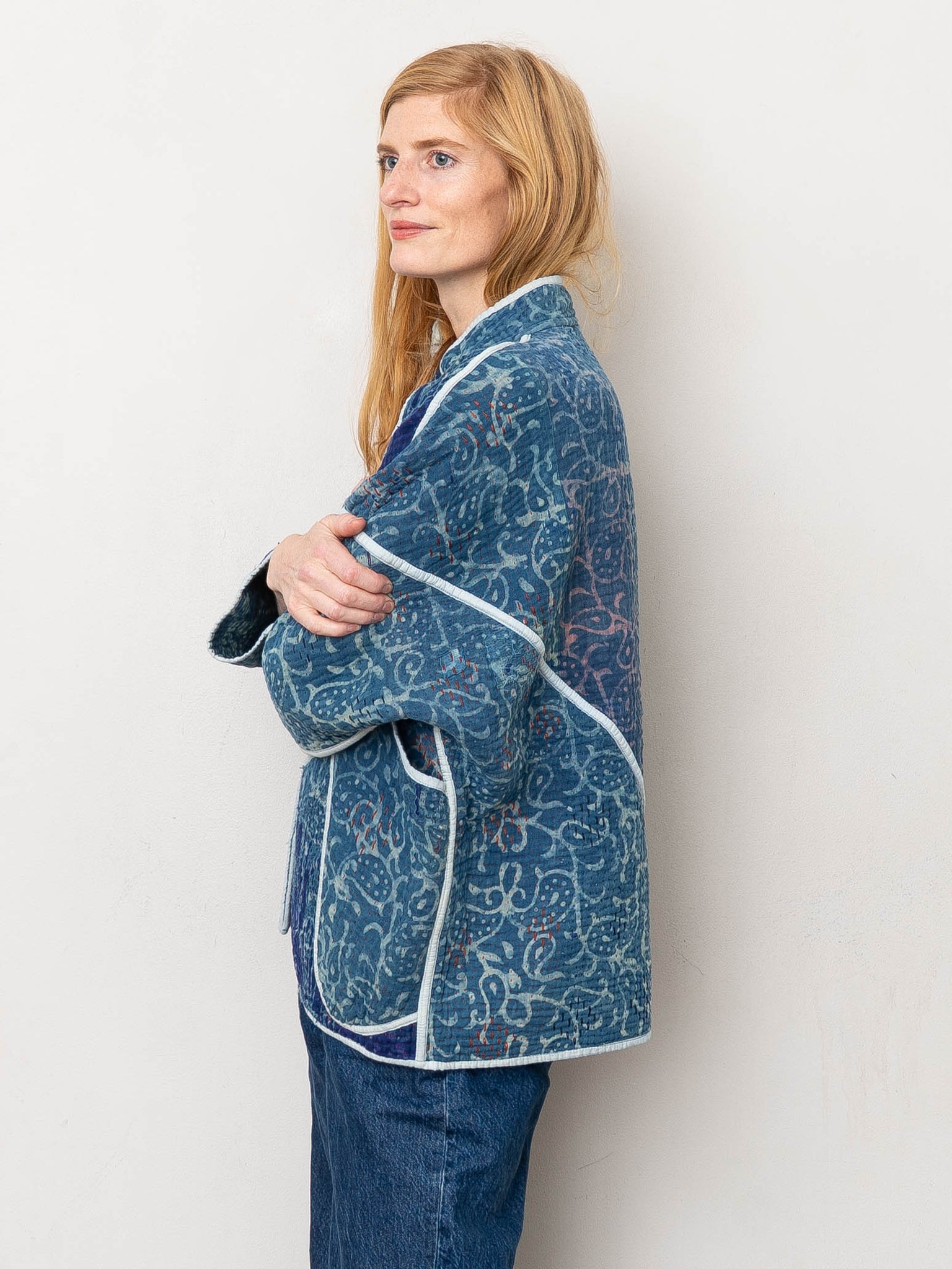 This Jacket features mud resist motifs dyed with plant based dyes over the Vintage Kantha textiles.