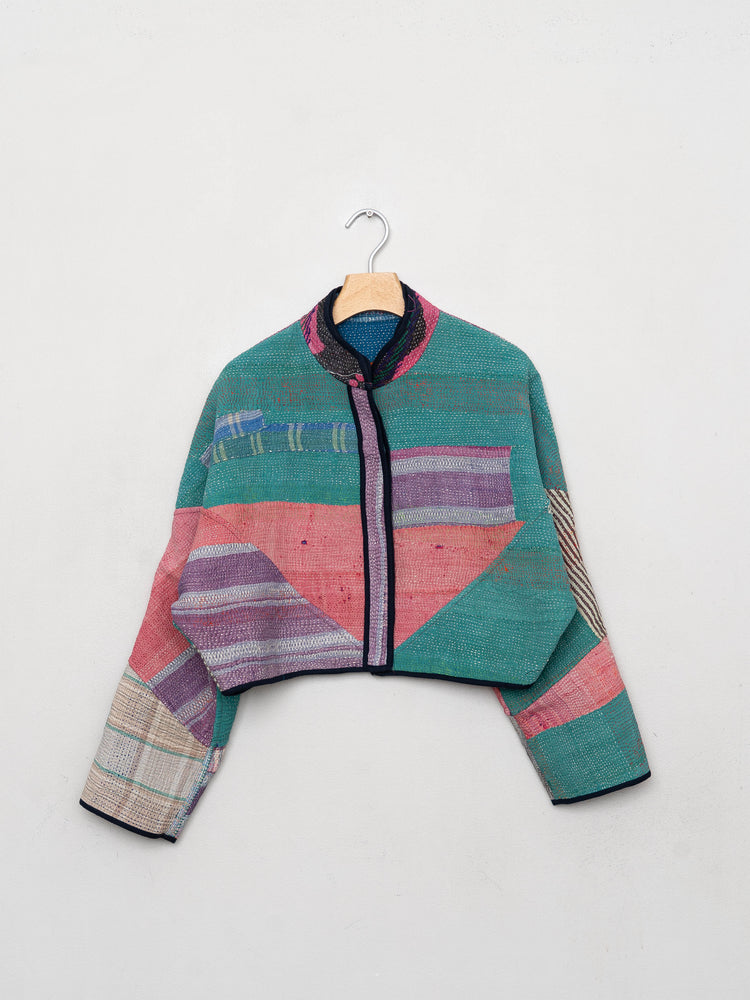 The Kaira Cropped Quilted Patchwork Kantha Jacket