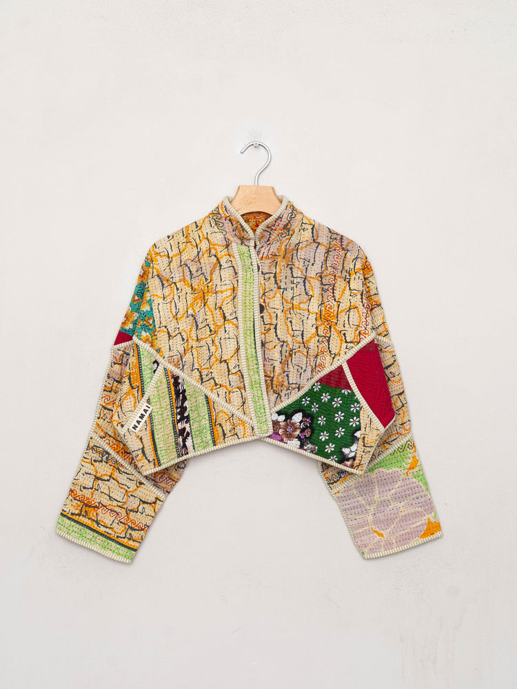 The Kaira Cropped Quilted Patchwork Kantha Jacket
