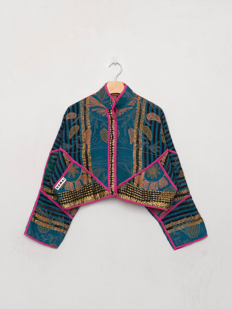 The Kaira Cropped Suzani Quilted Kantha Jacket