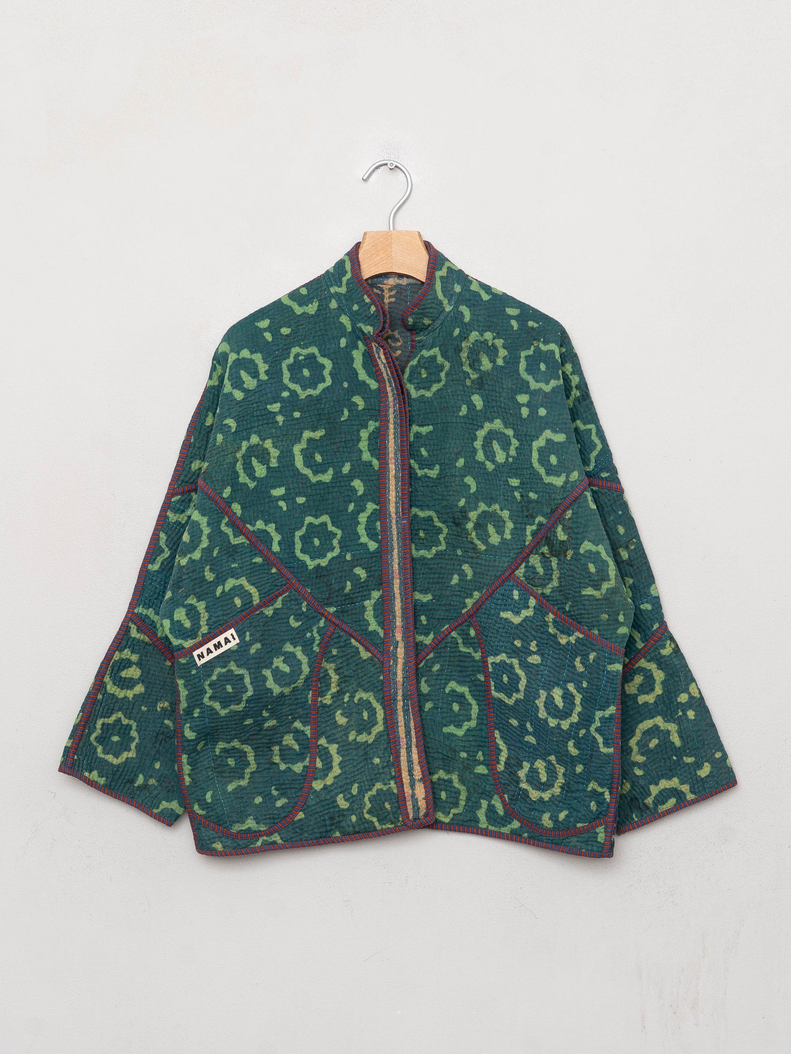 Because the quilts are vintage, gentle signs of age — like fading, small repairs, or texture variations — are expected and part of the textile’s character. Namai also offers lifetime repairs to help keep your jacket in long-term rotation.