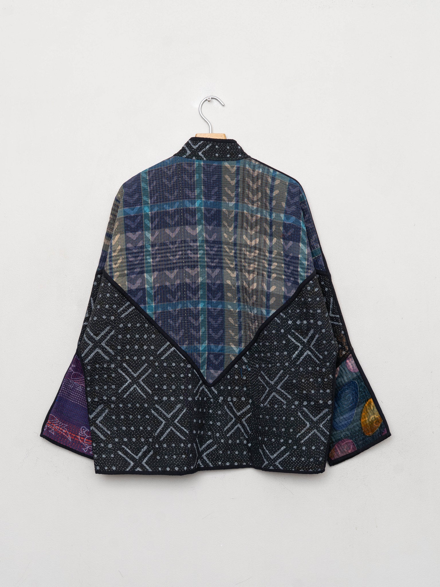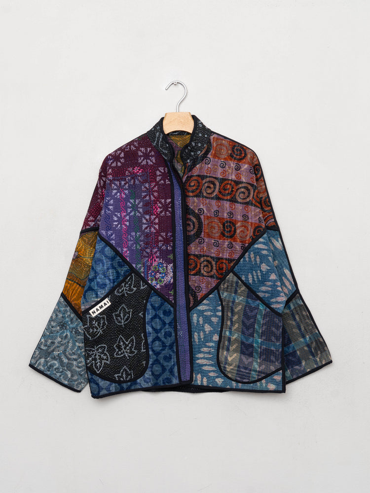 This Jacket features mud resist motifs dyed with plant based dyes over the Vintage Kantha textiles.