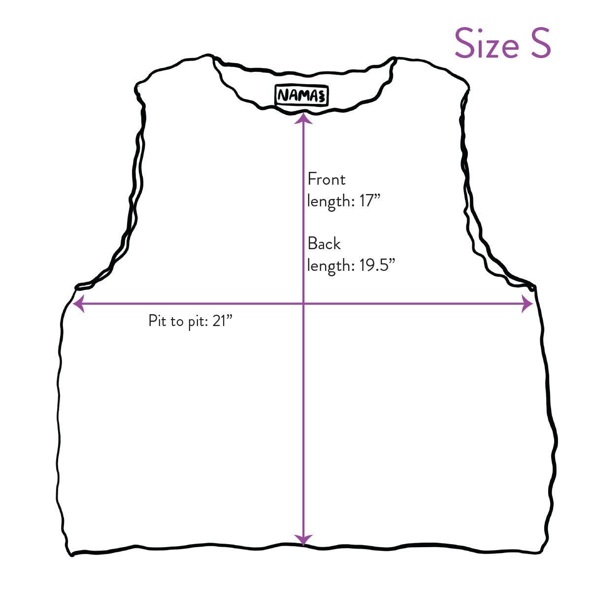 Pit-to-pit (from the bottom of armhole): 21”