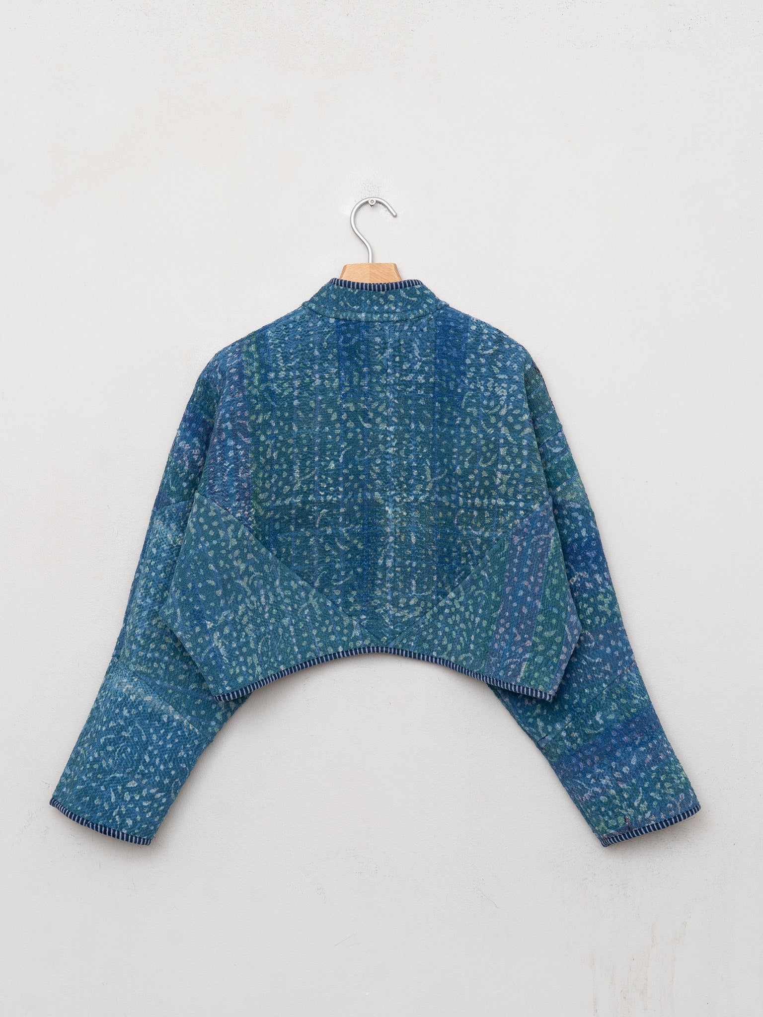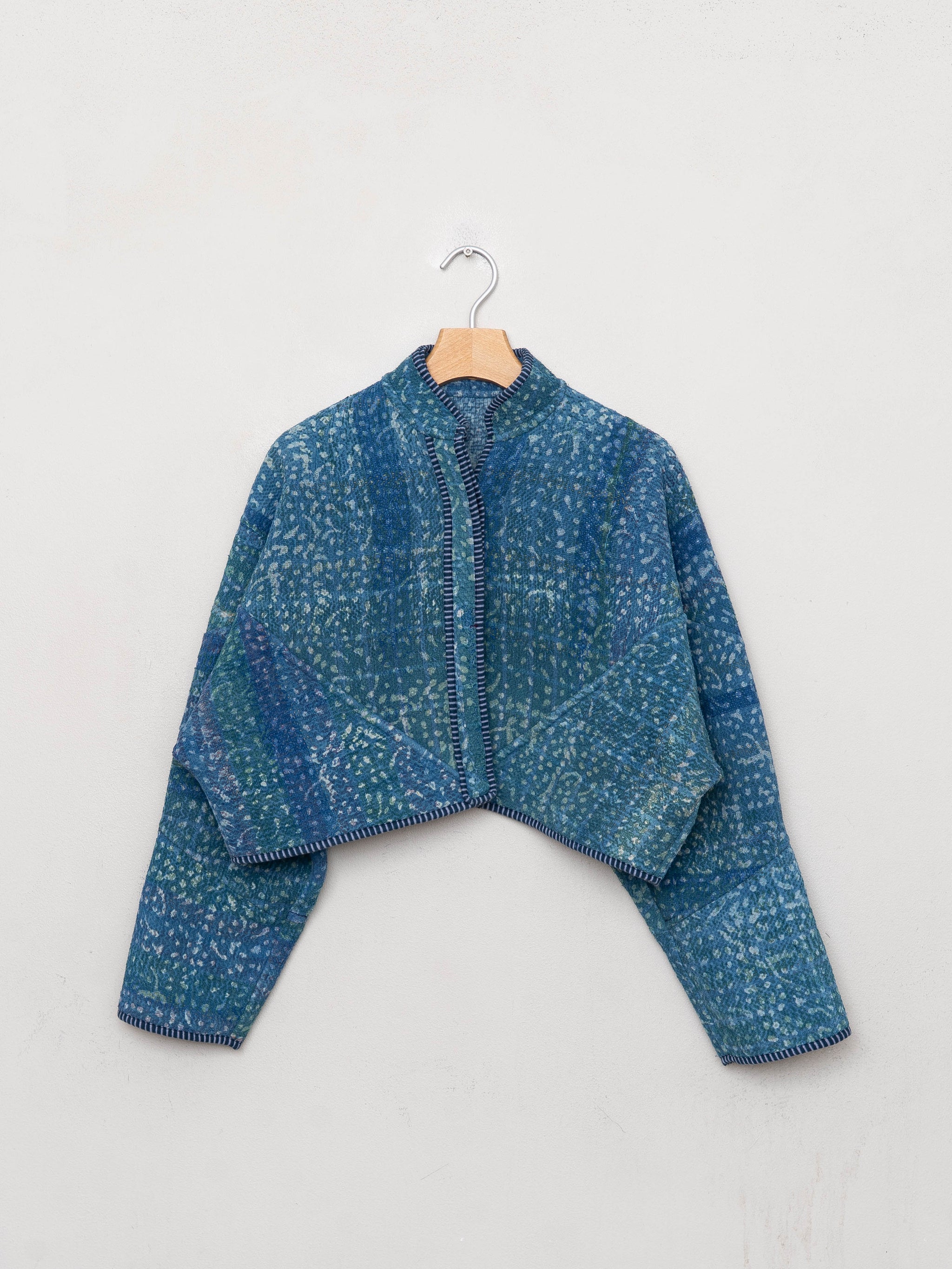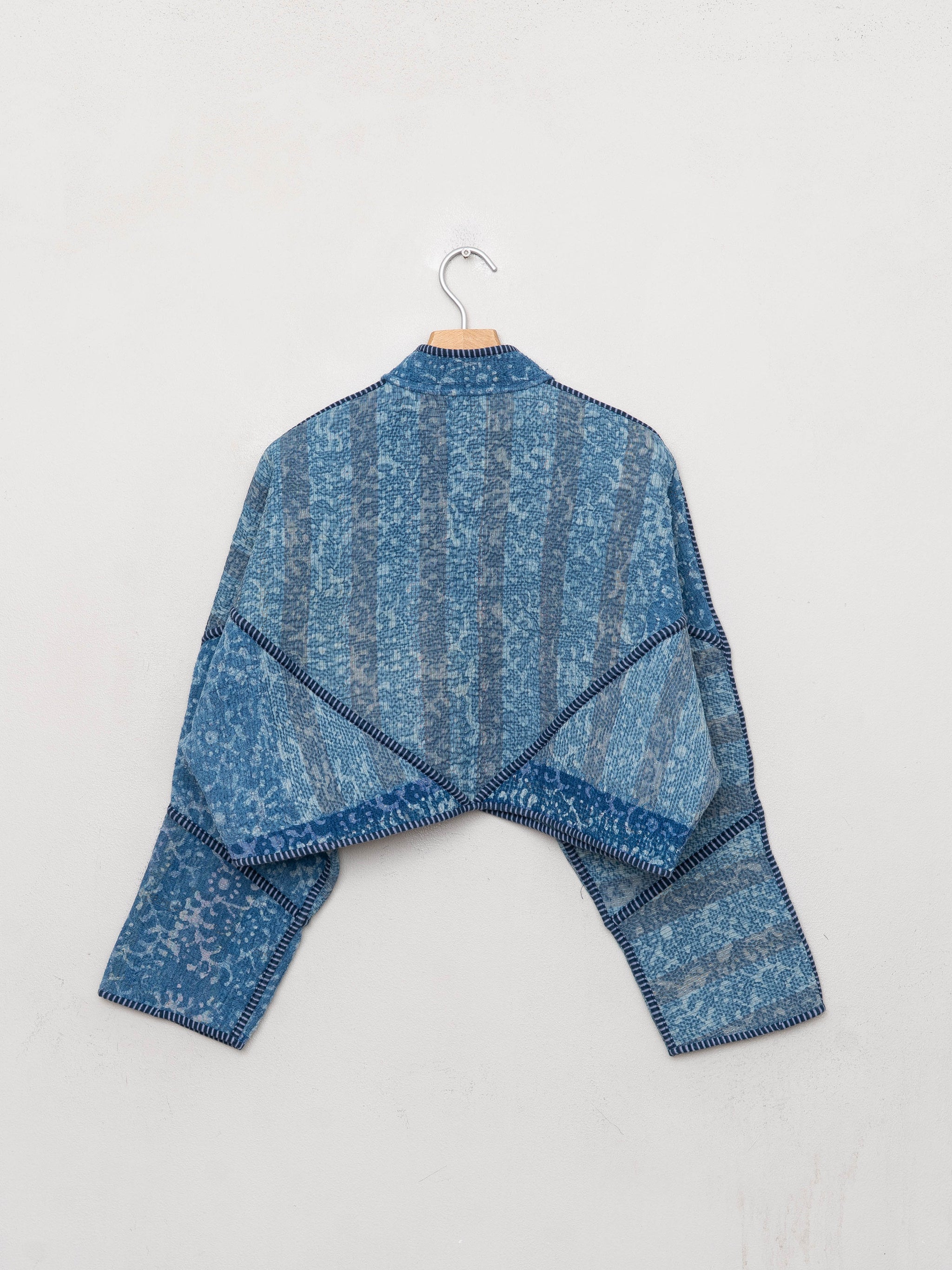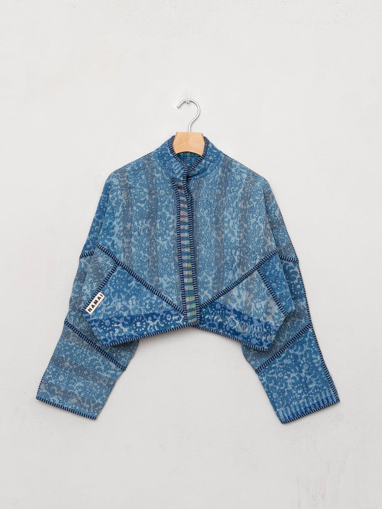 The Kaira Cropped Quilted Indigo Kantha Jacket