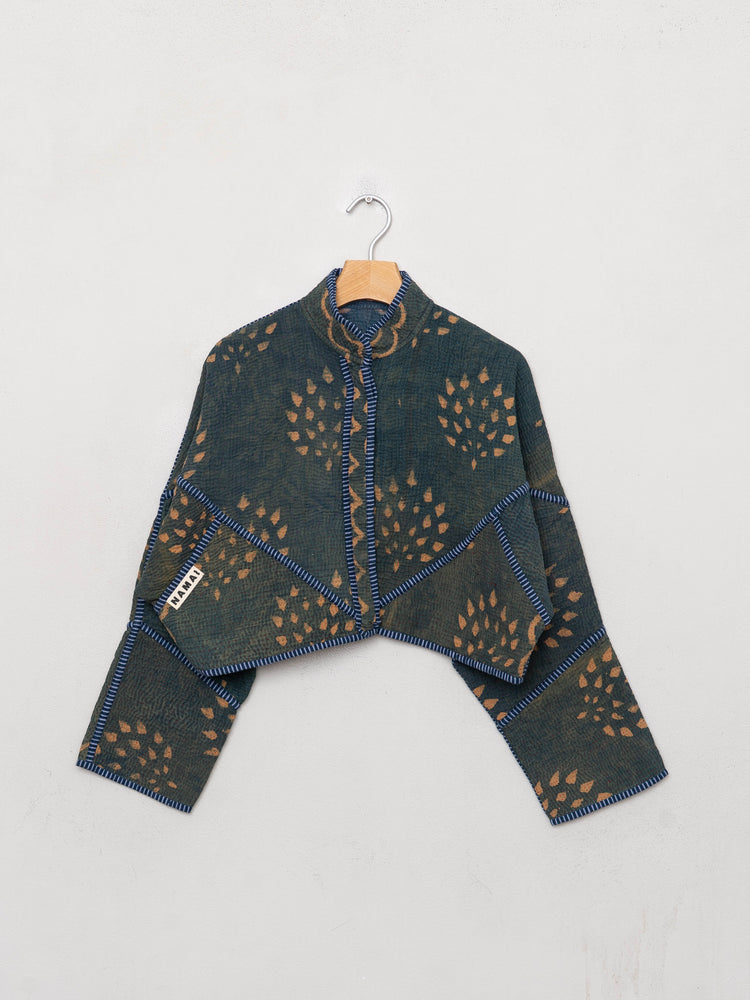 The Kaira Cropped Quilted Indigo Kantha Jacket