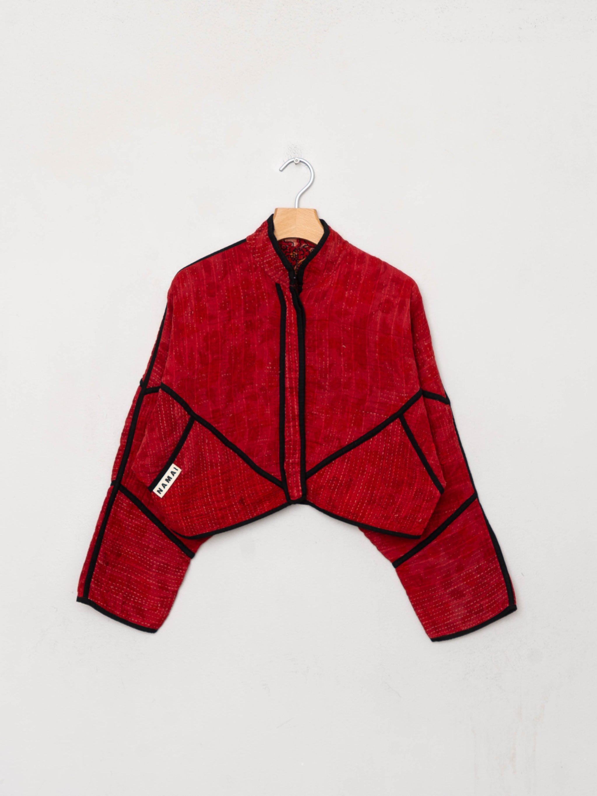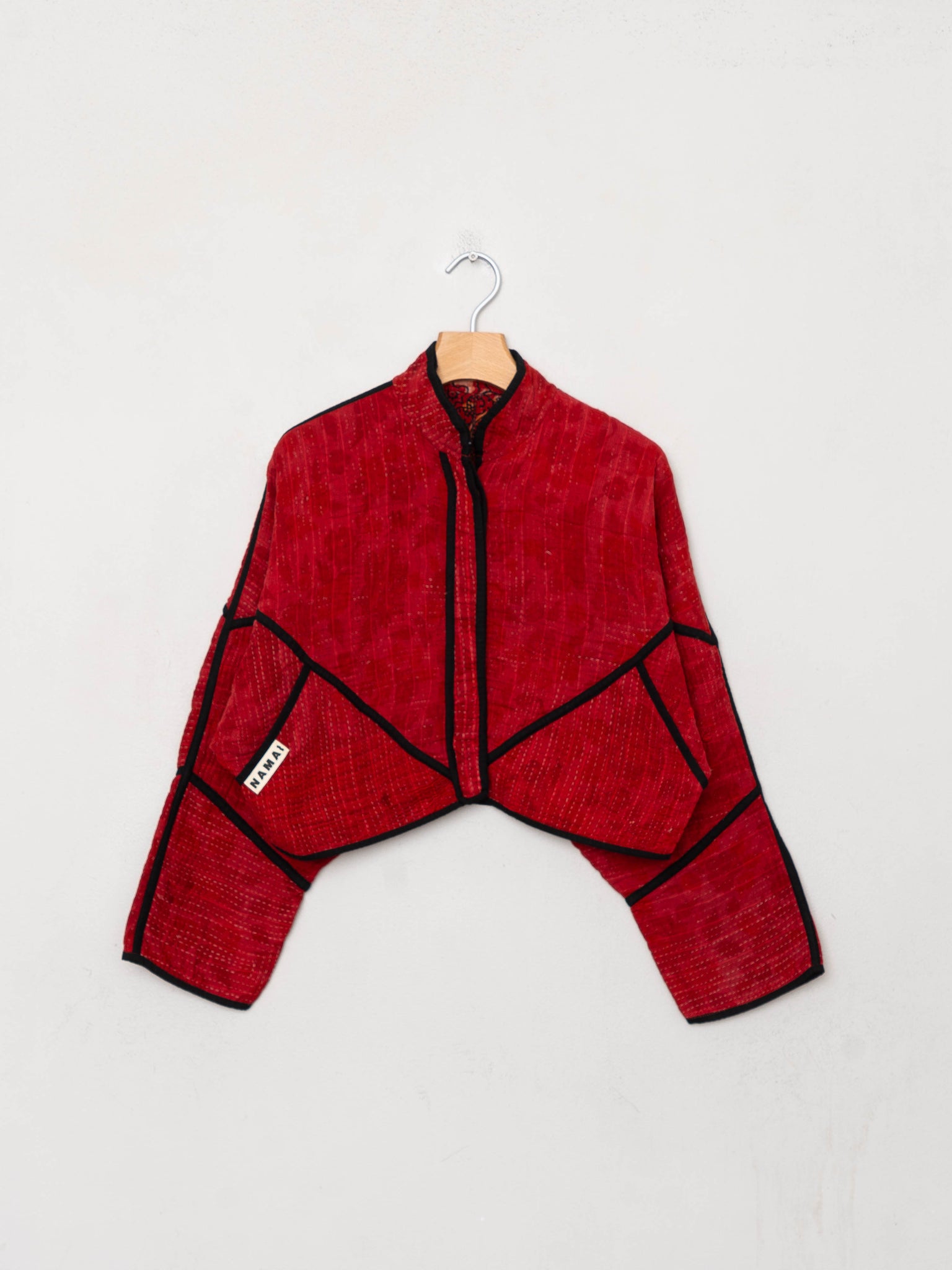 The Kaira Cropped Quilted Indigo Kantha Jacket