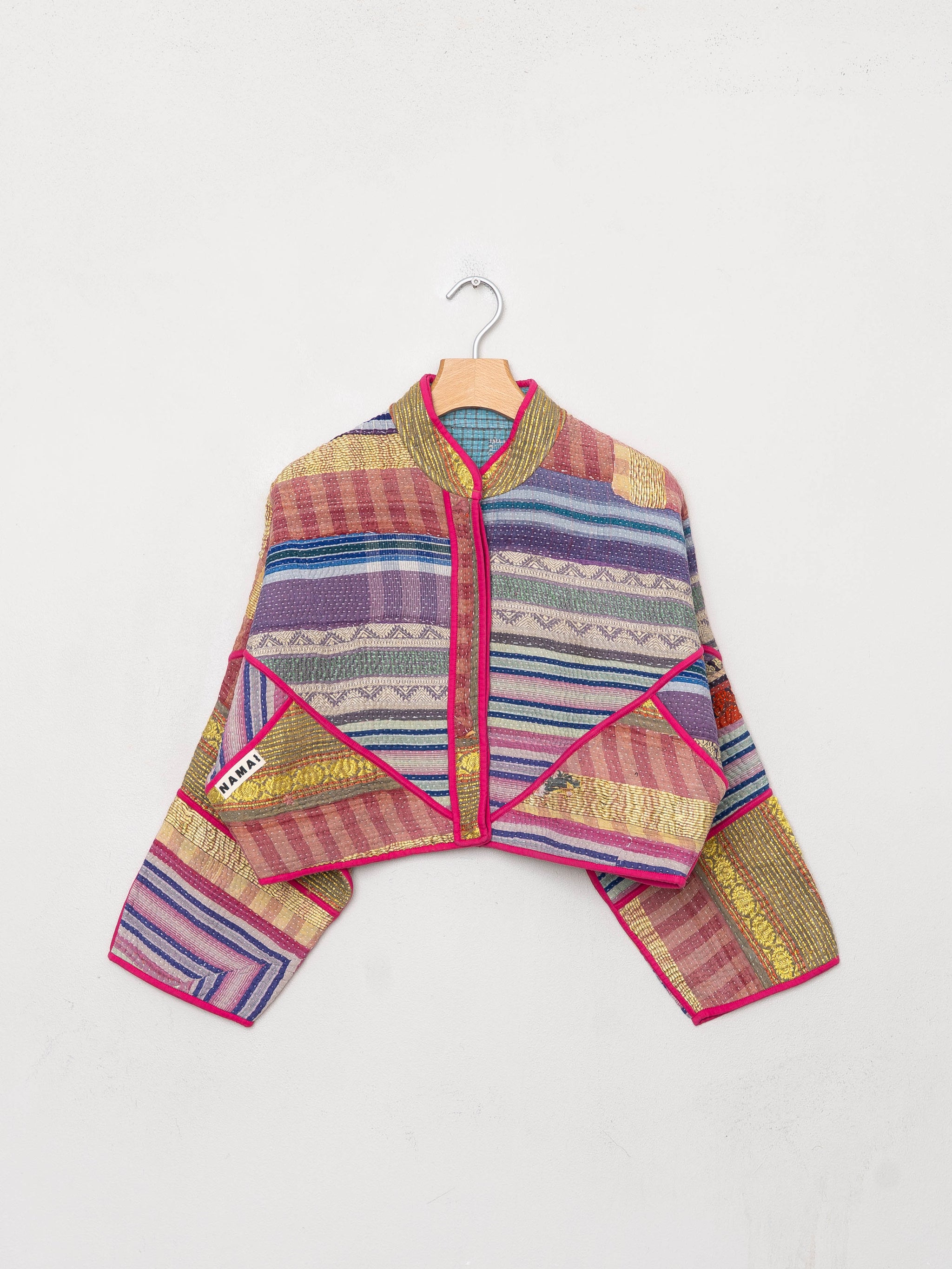 The Kaira Cropped Quilted Patchwork Kantha Jacket