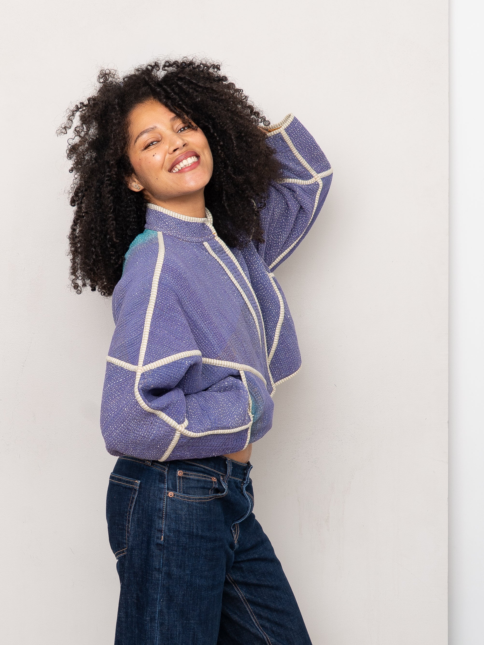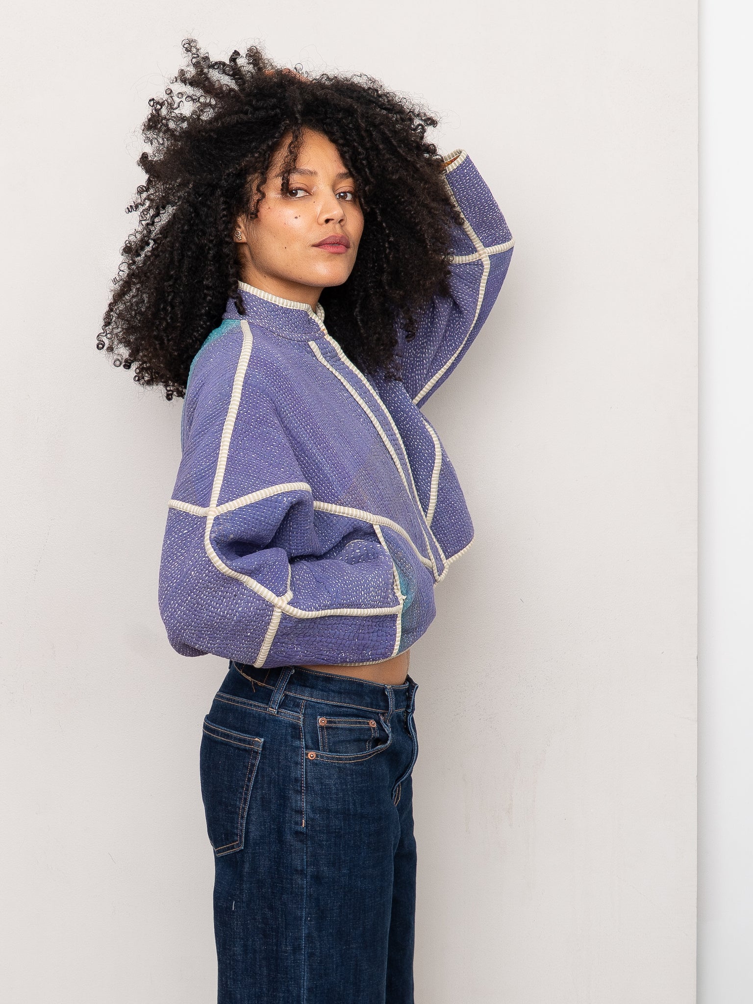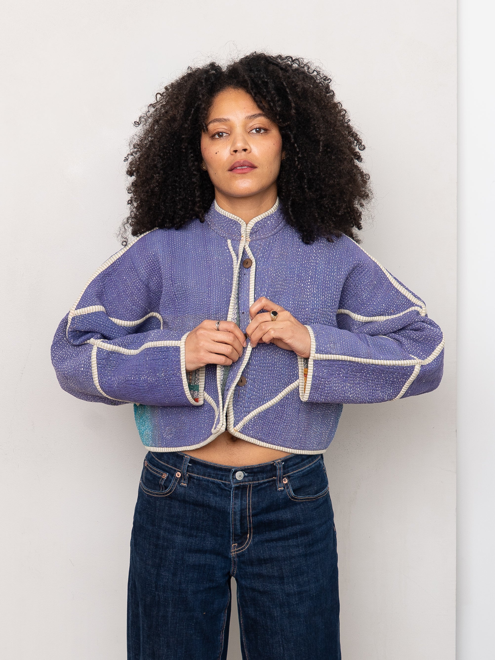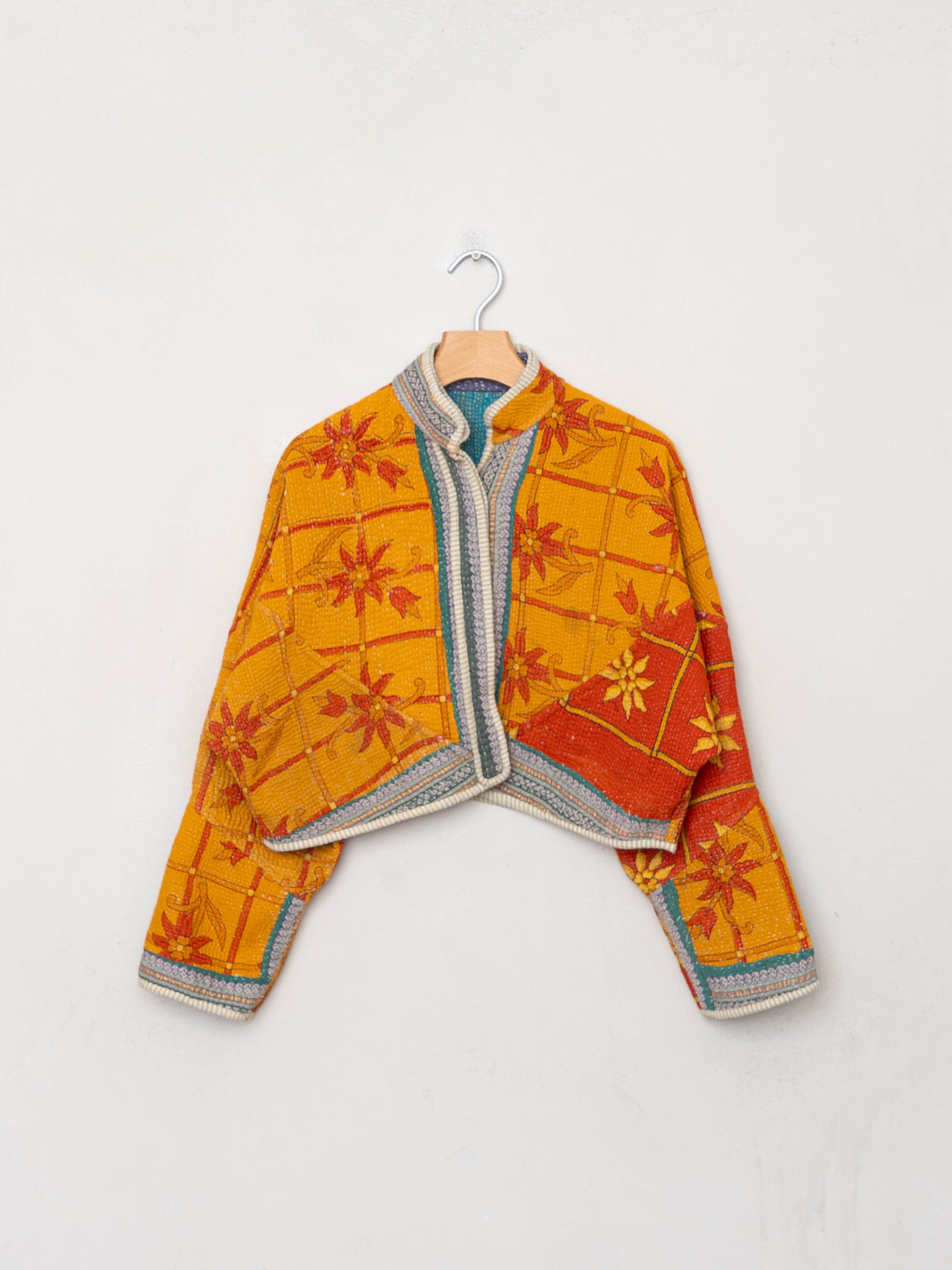 The Kaira Cropped Quilted Patchwork Kantha Jacket