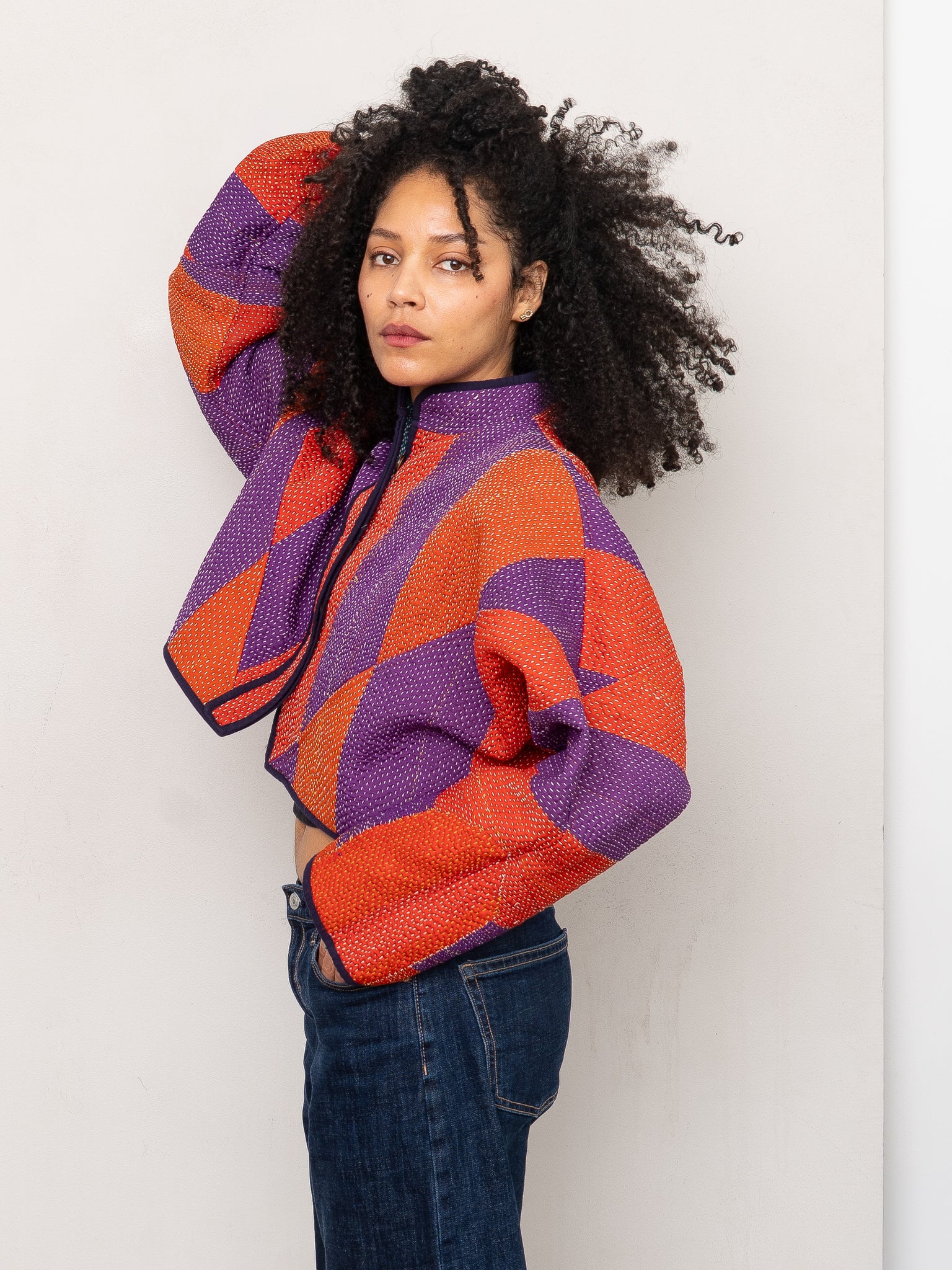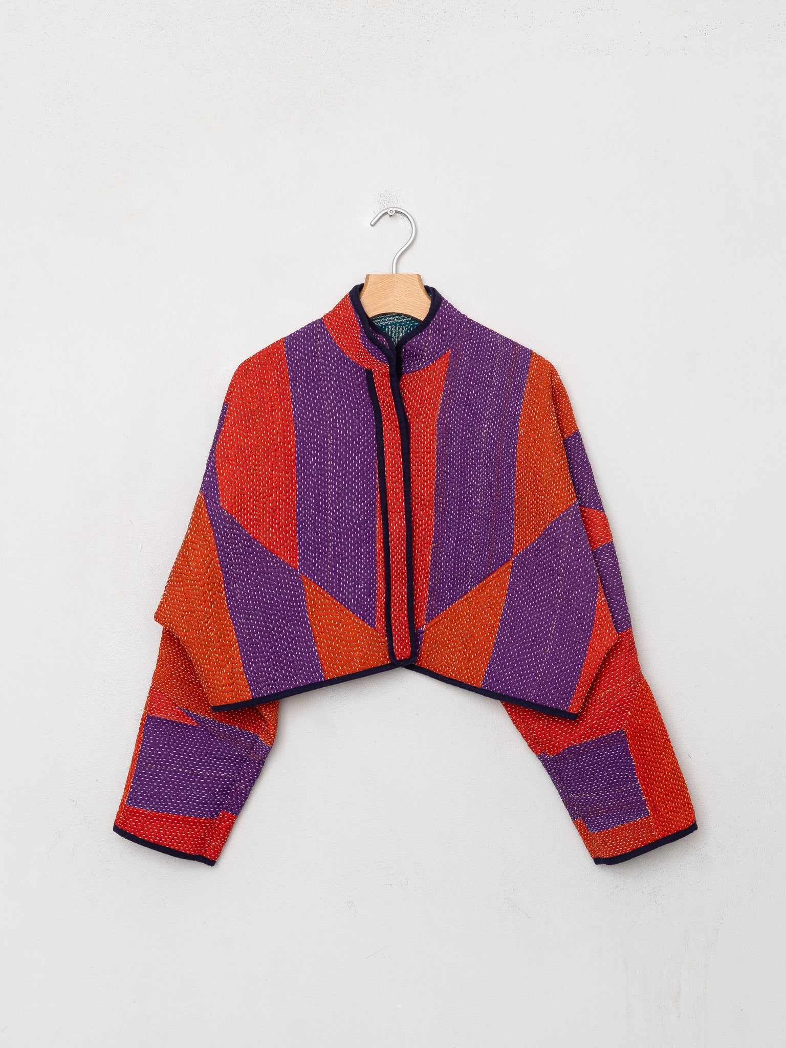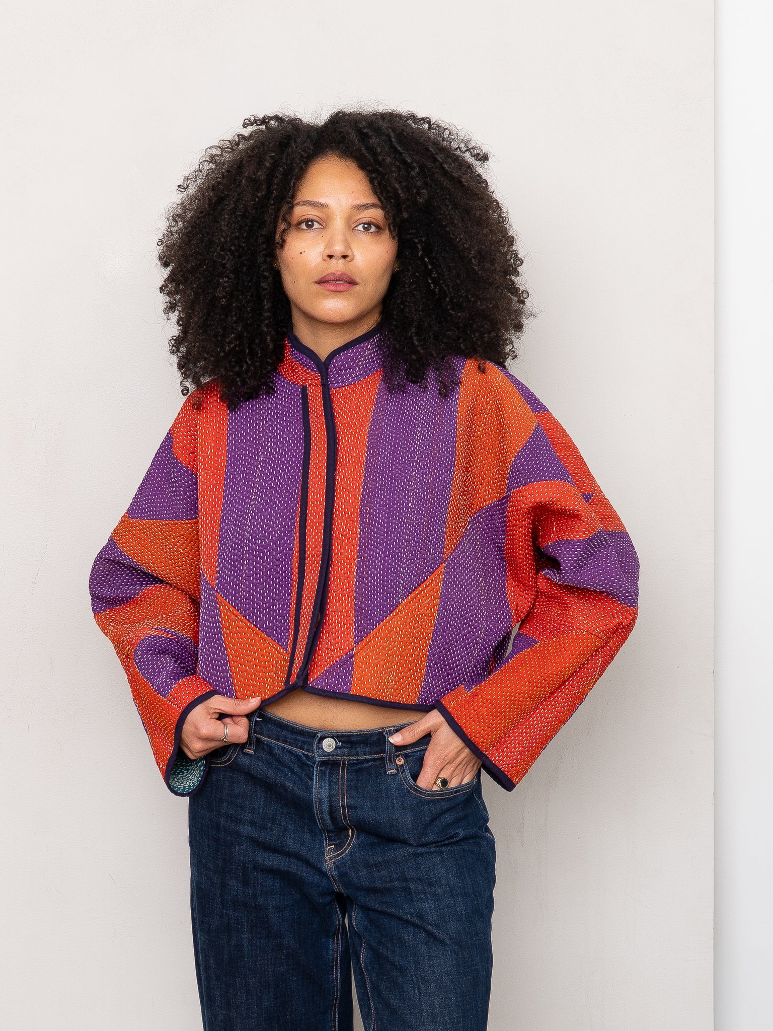 The Kaira Cropped Quilted Patchwork Kantha Jacket