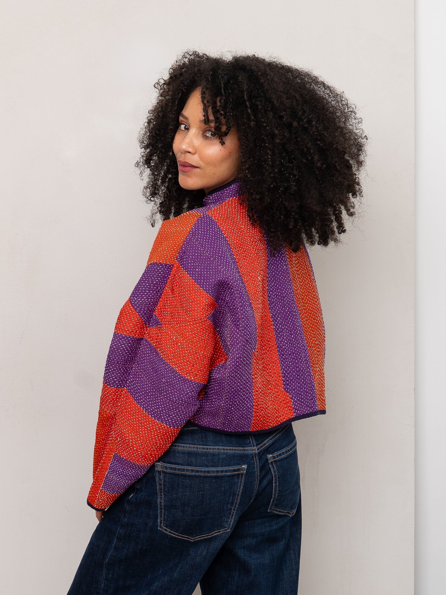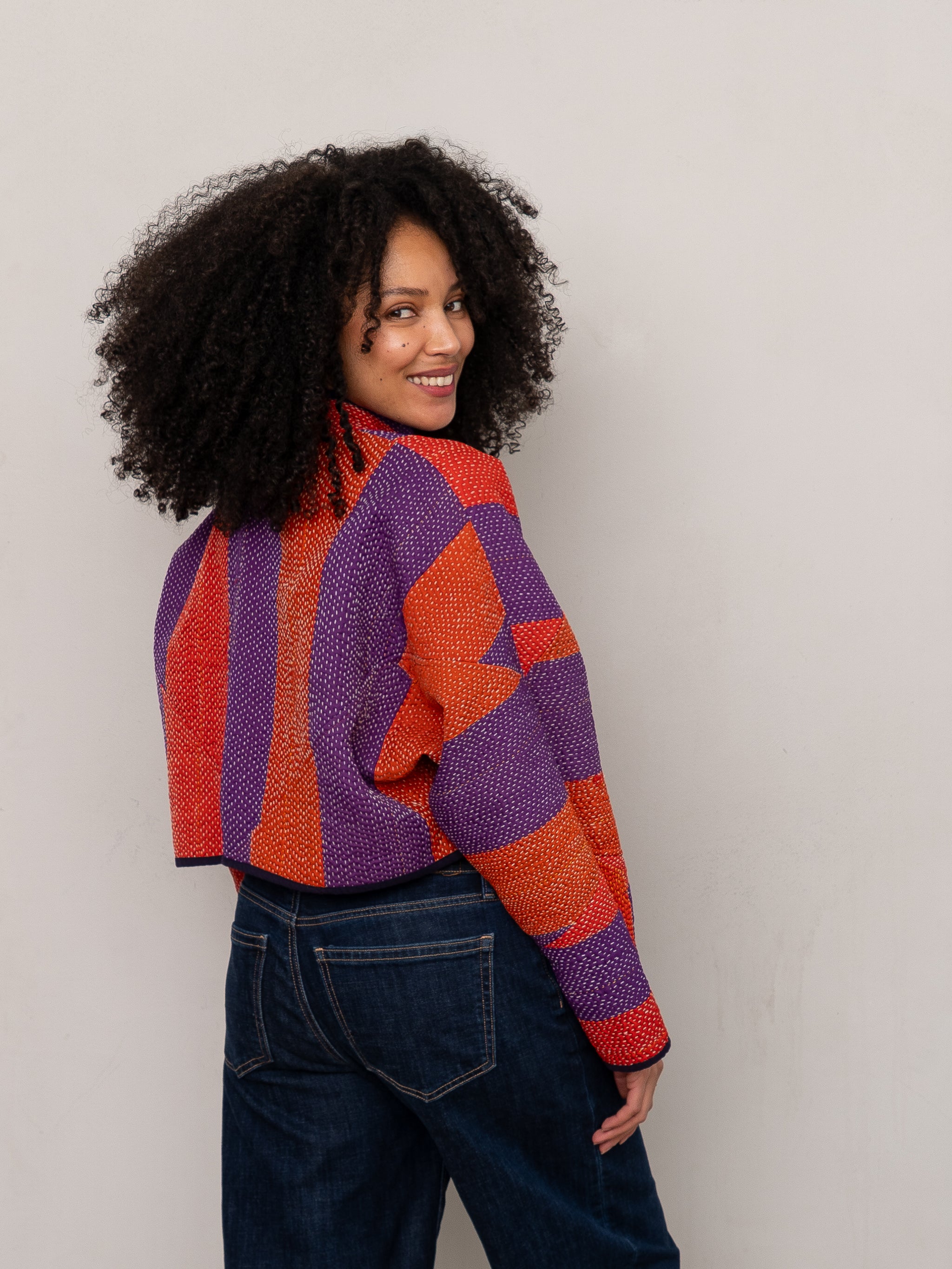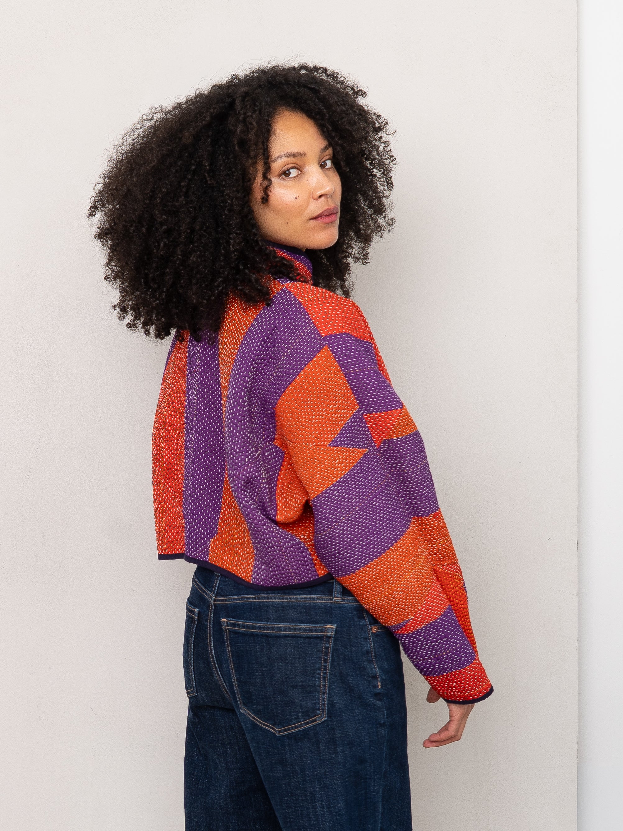 The Kaira Cropped Quilted Patchwork Kantha Jacket