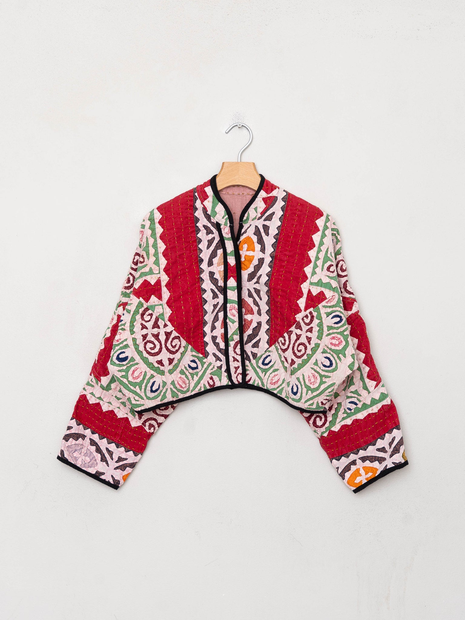 The Kaira Cropped Suzani Cut Out Kantha Jacket
