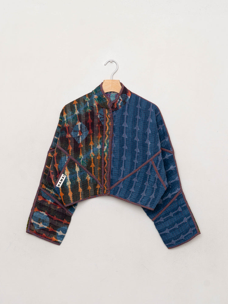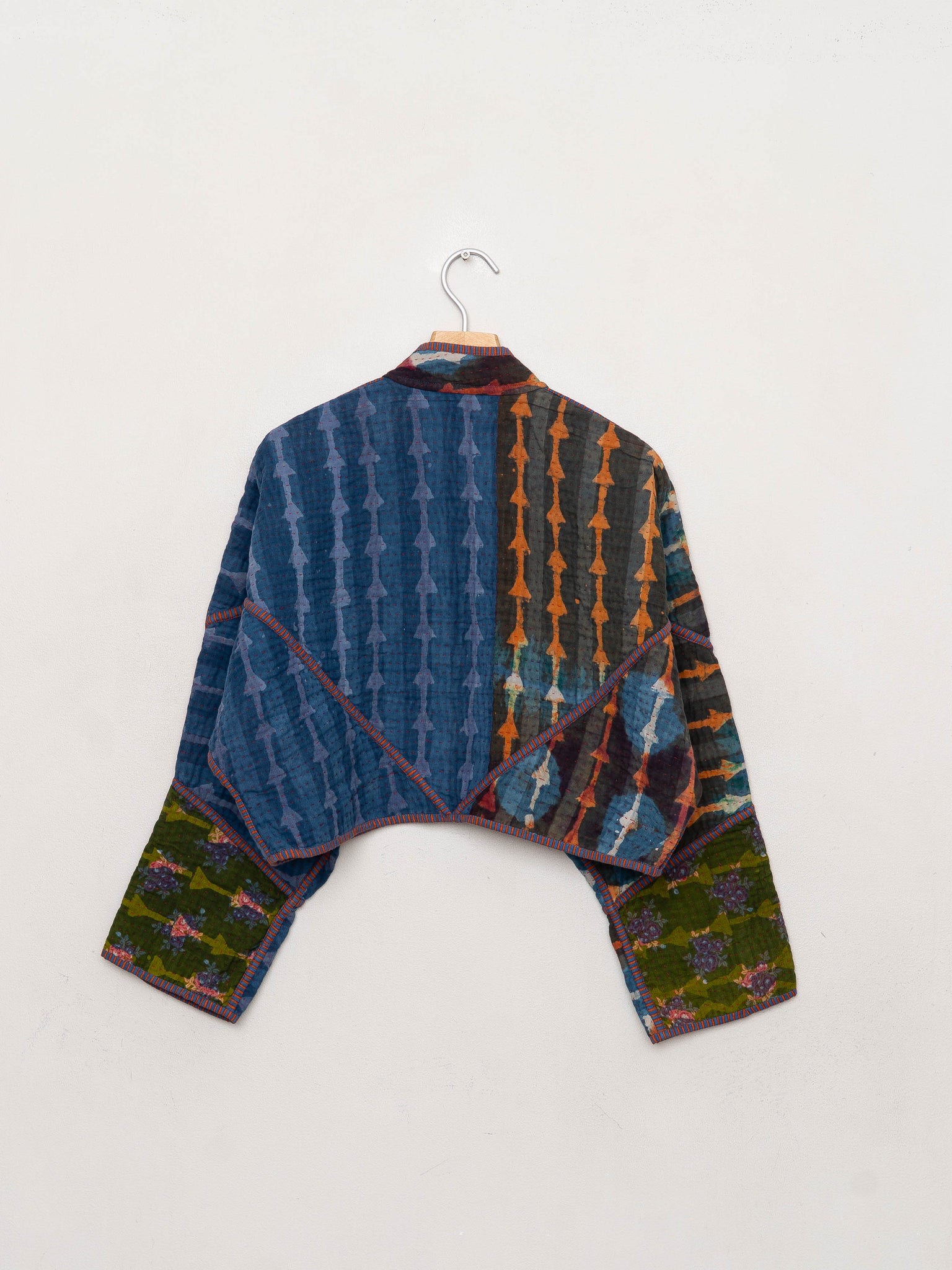 The Kaira Cropped Quilted Indigo Kantha Jacket