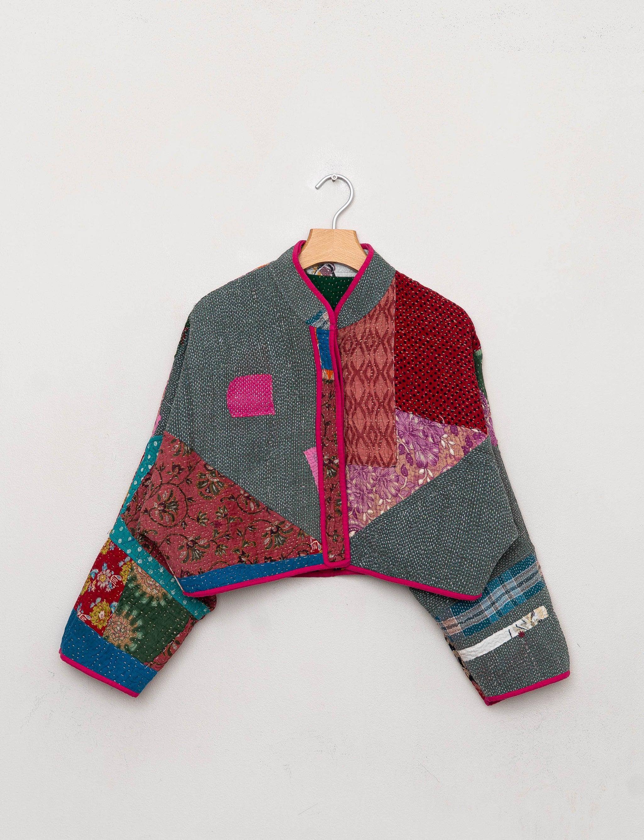 The Kaira Cropped Quilted Patchwork Kantha Jacket