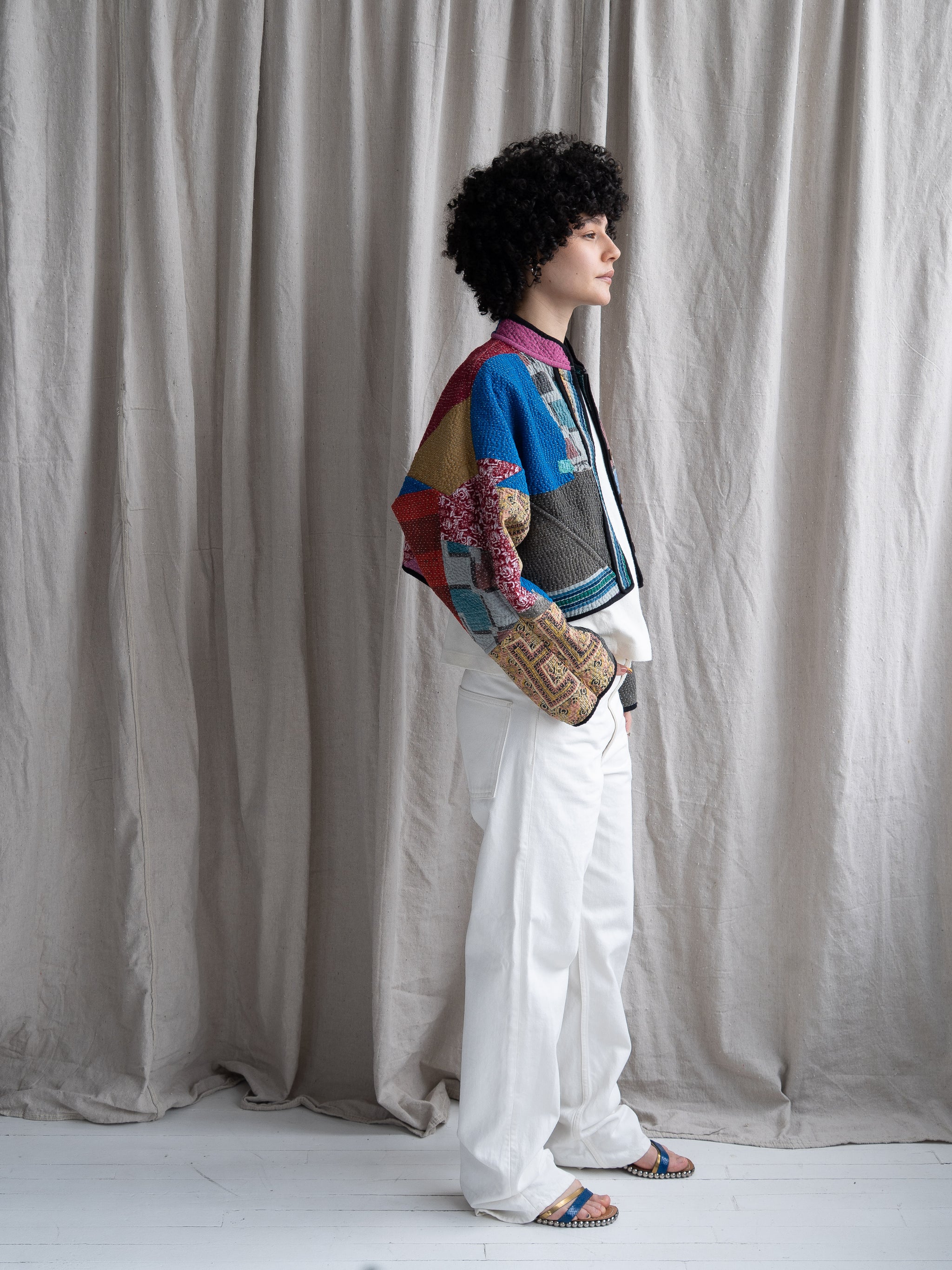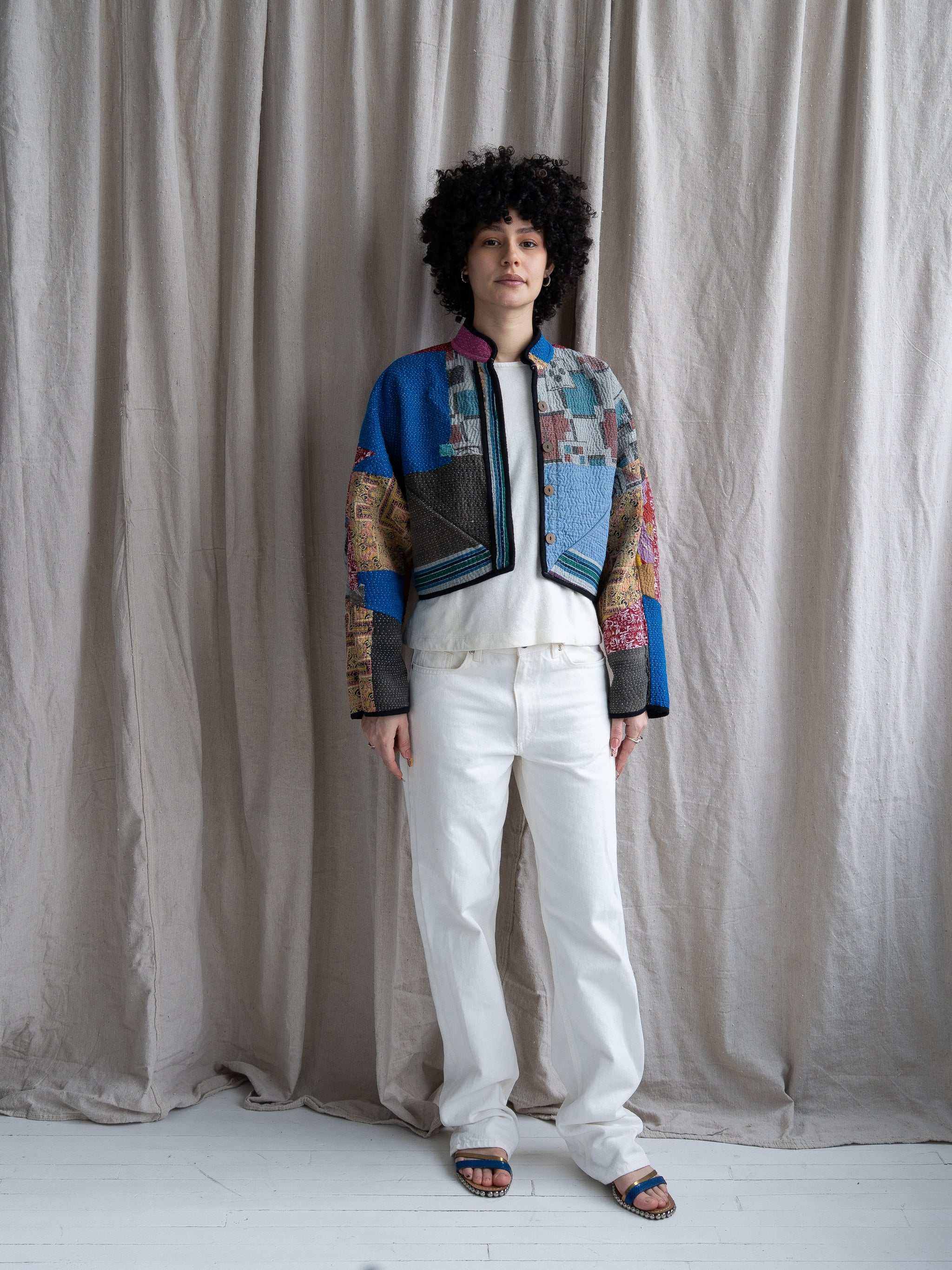 The Kaira Cropped Quilted Patchwork Kantha Jacket