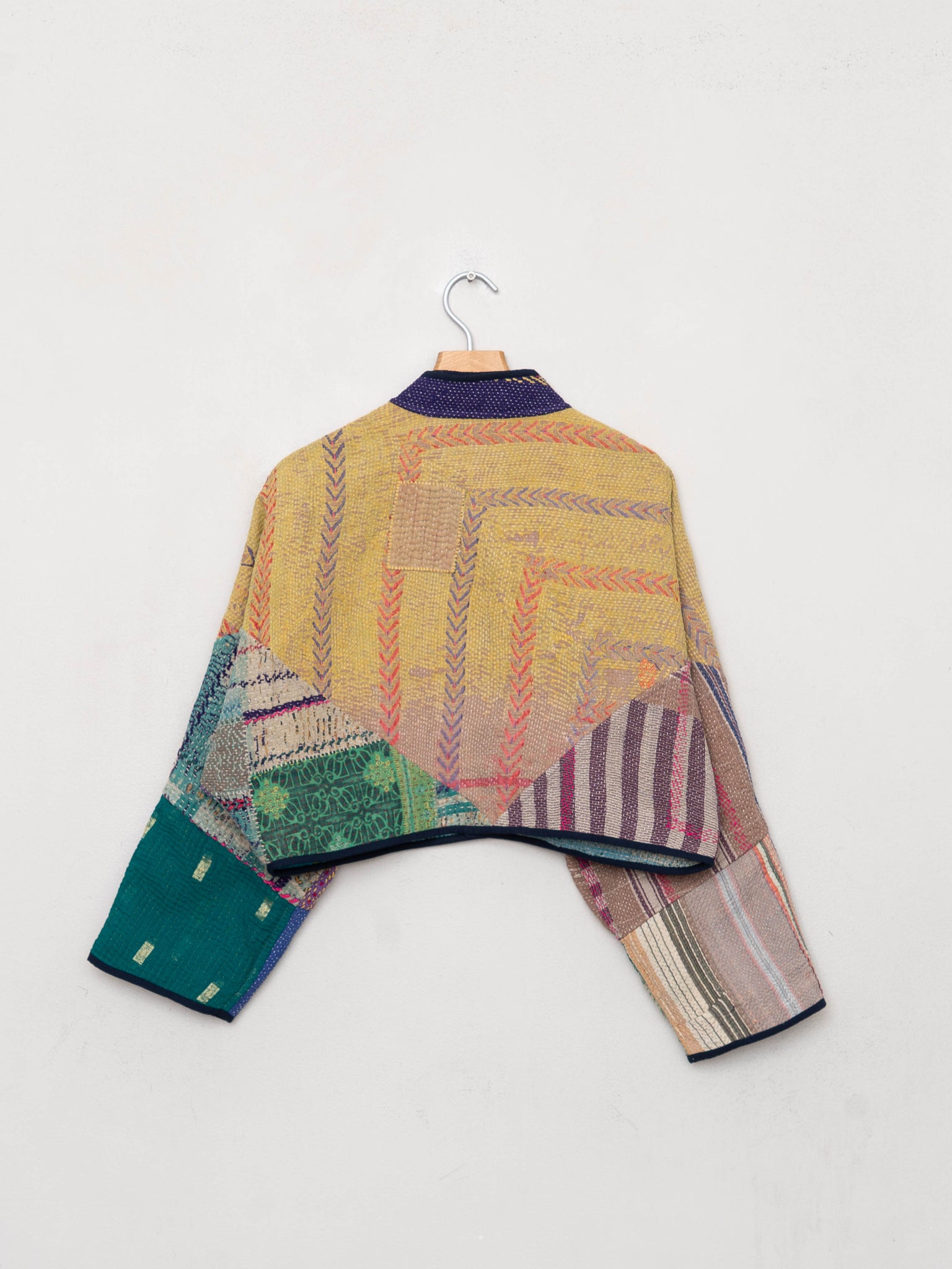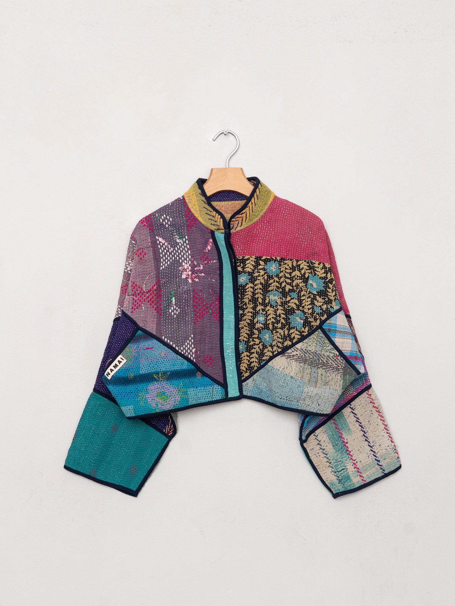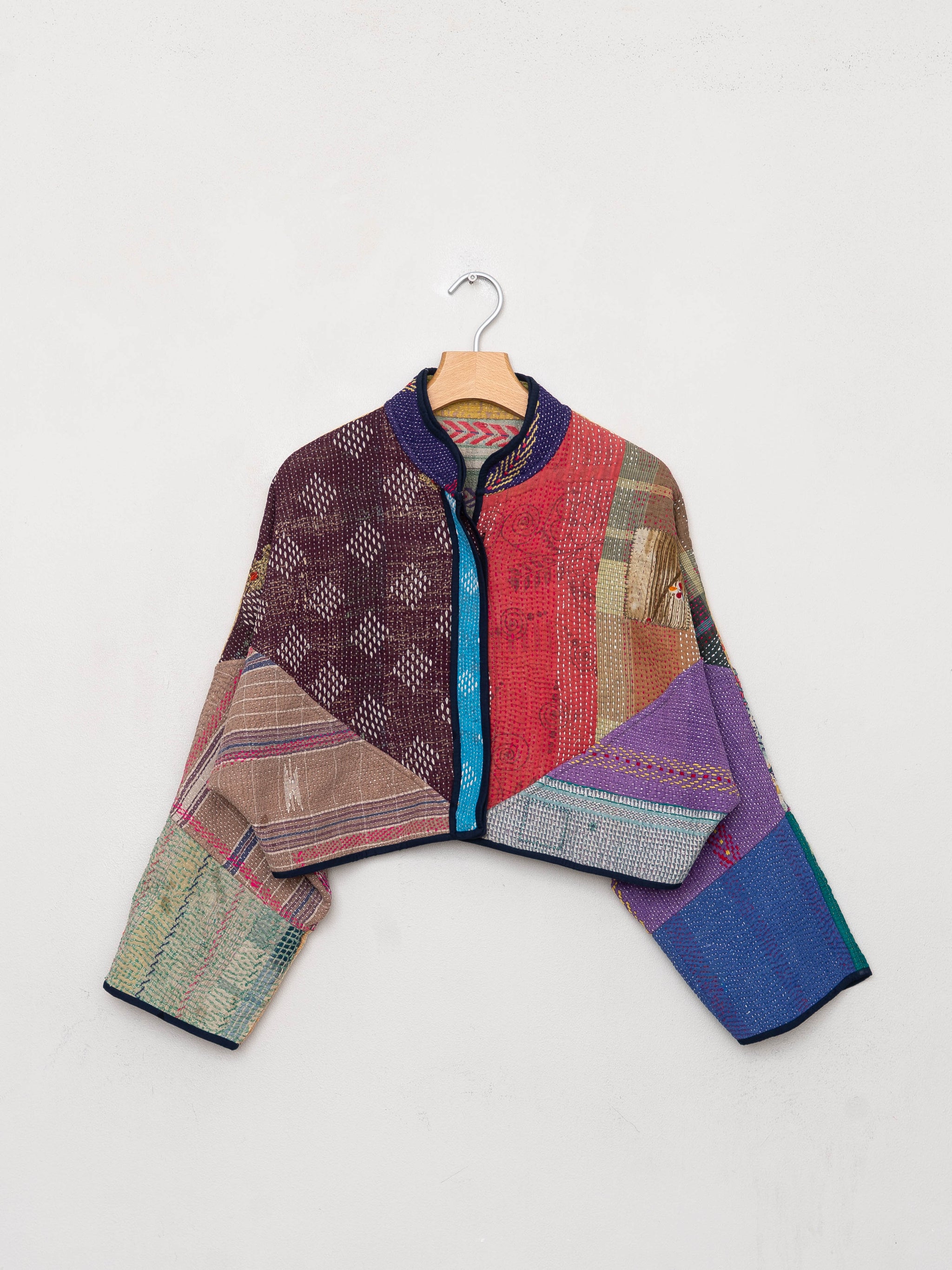 The Kaira Cropped Quilted Patchwork Kantha Jacket
