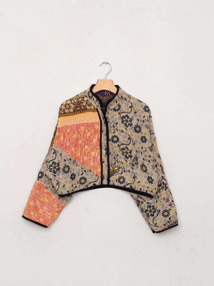 The Kaira Cropped Quilted Patchwork Kantha Jacket