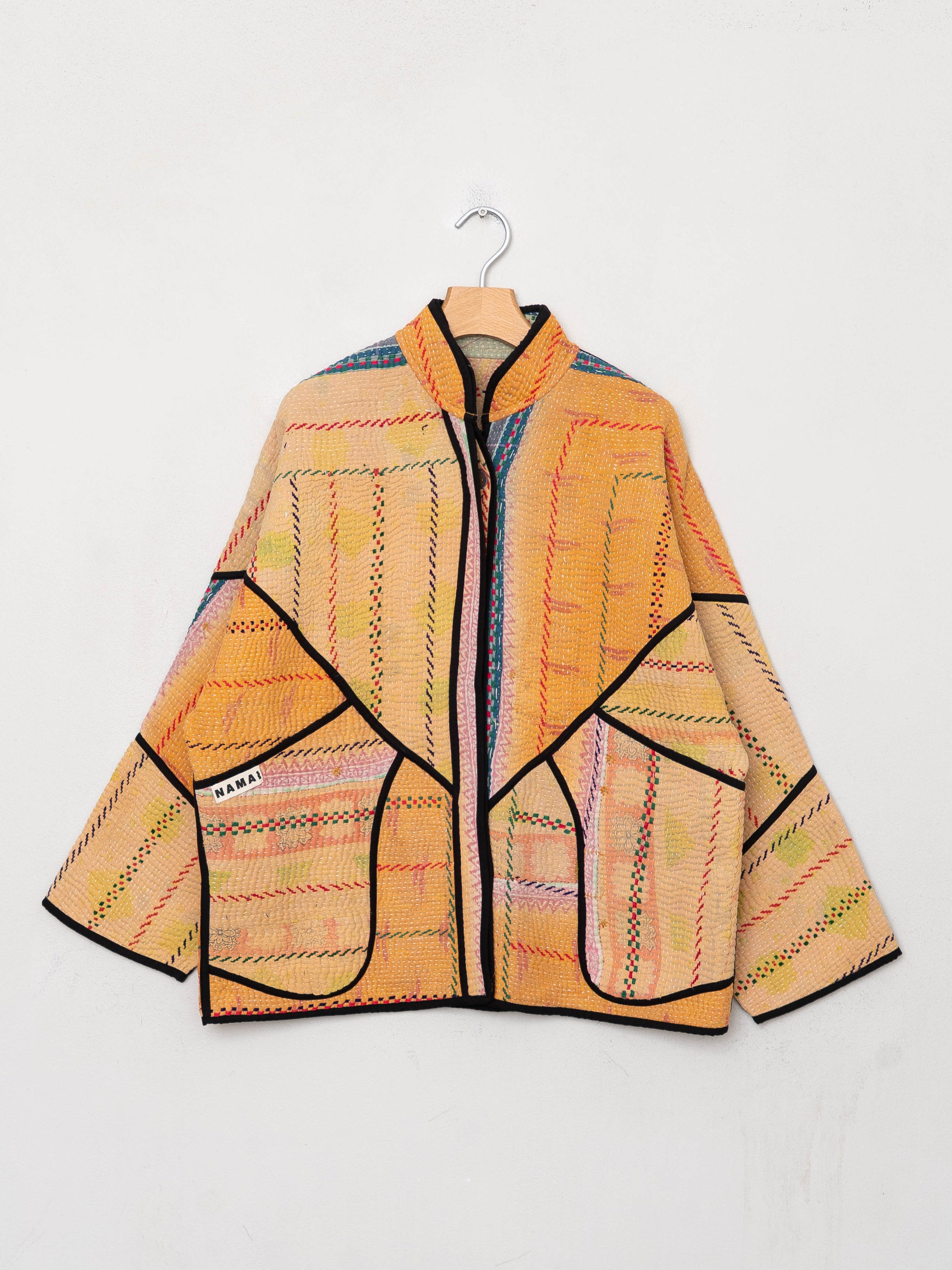 Because the quilts are vintage, gentle signs of age — like fading, small repairs, or texture variations — are expected and part of the textile’s character. Namai also offers lifetime repairs to help keep your jacket in long-term rotation.