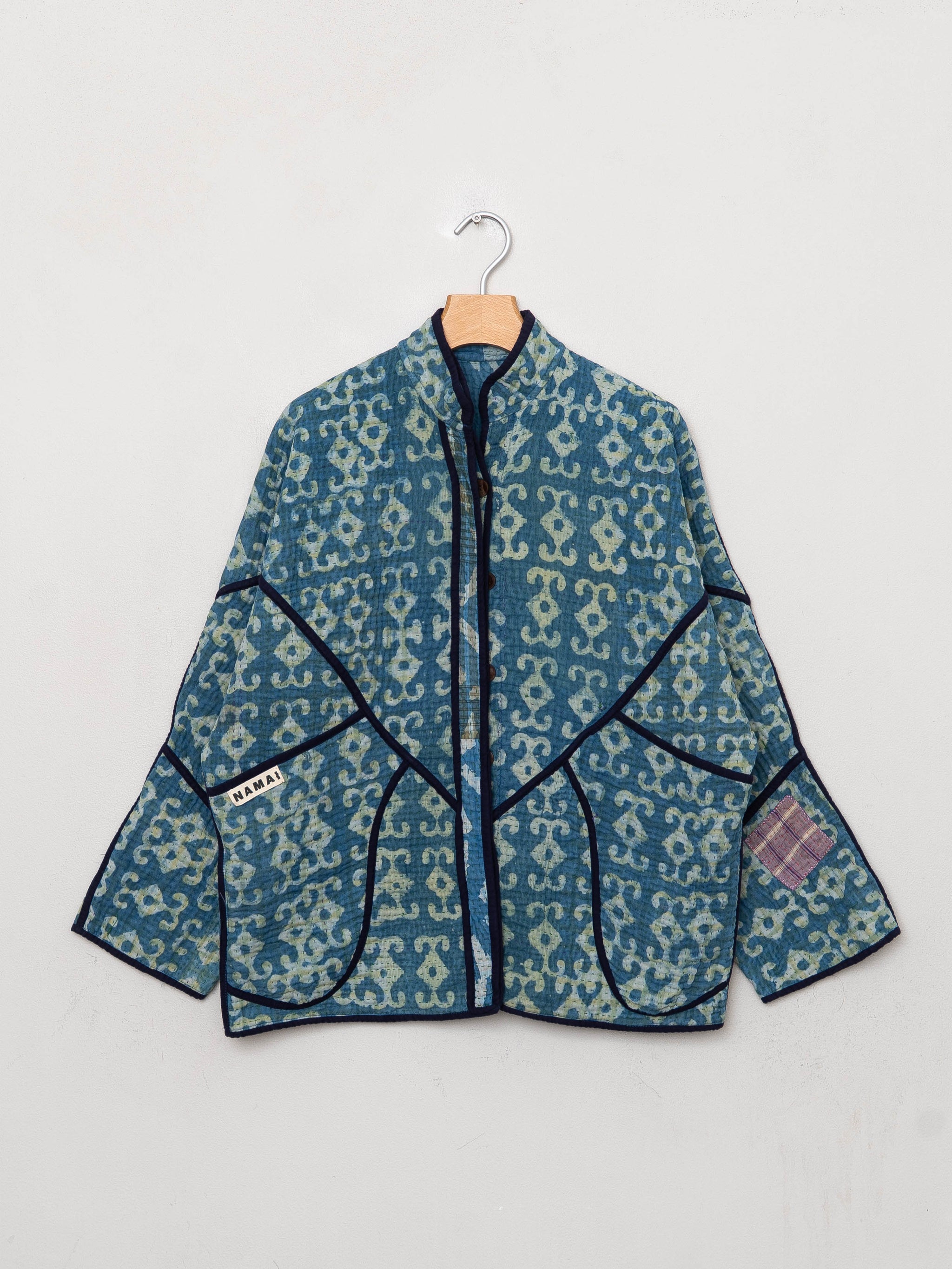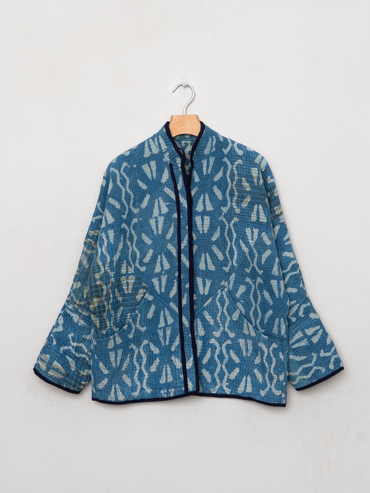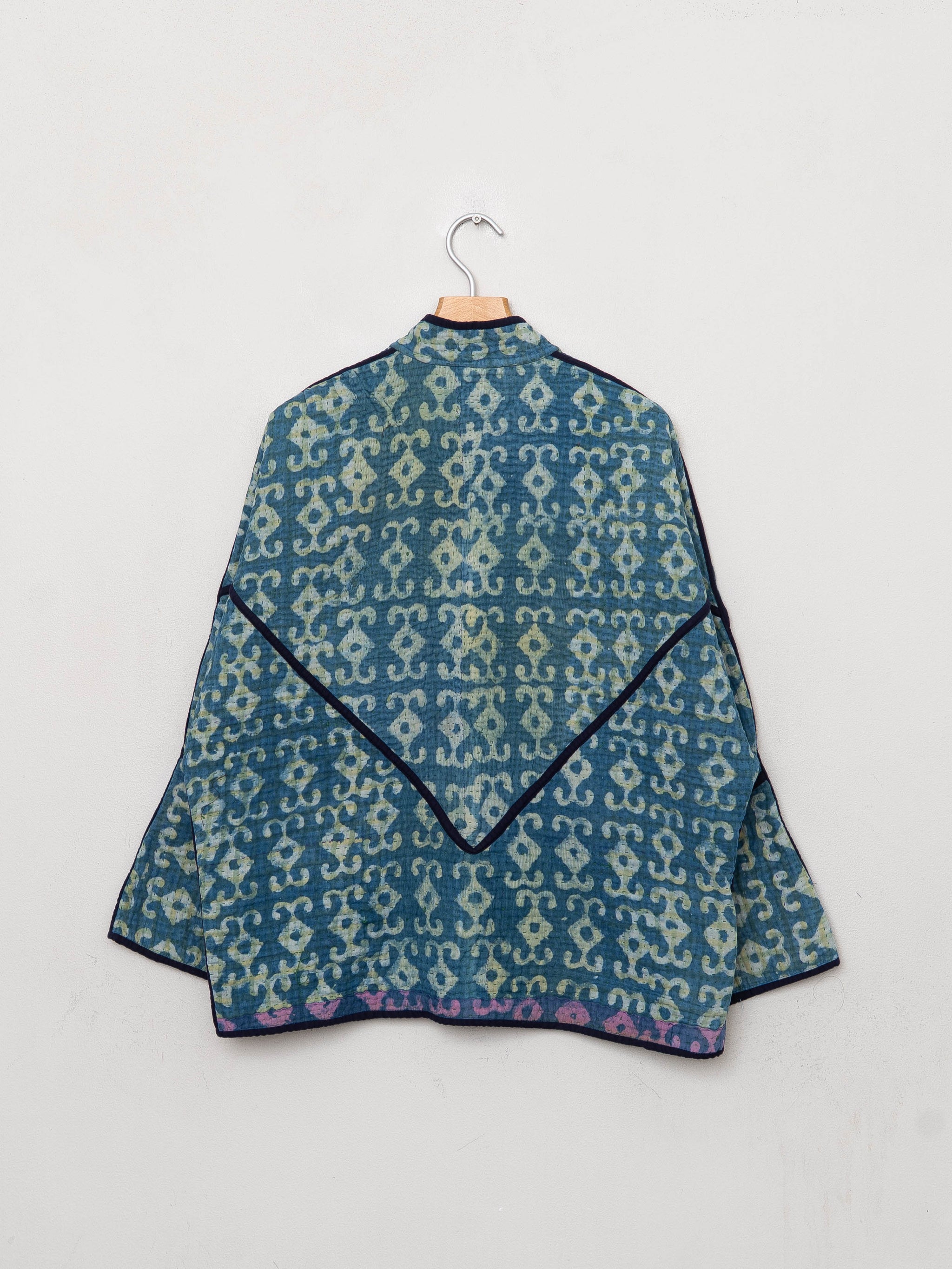 This Jacket features mud resist motifs dyed with plant based dyes over the Vintage Kantha textiles.