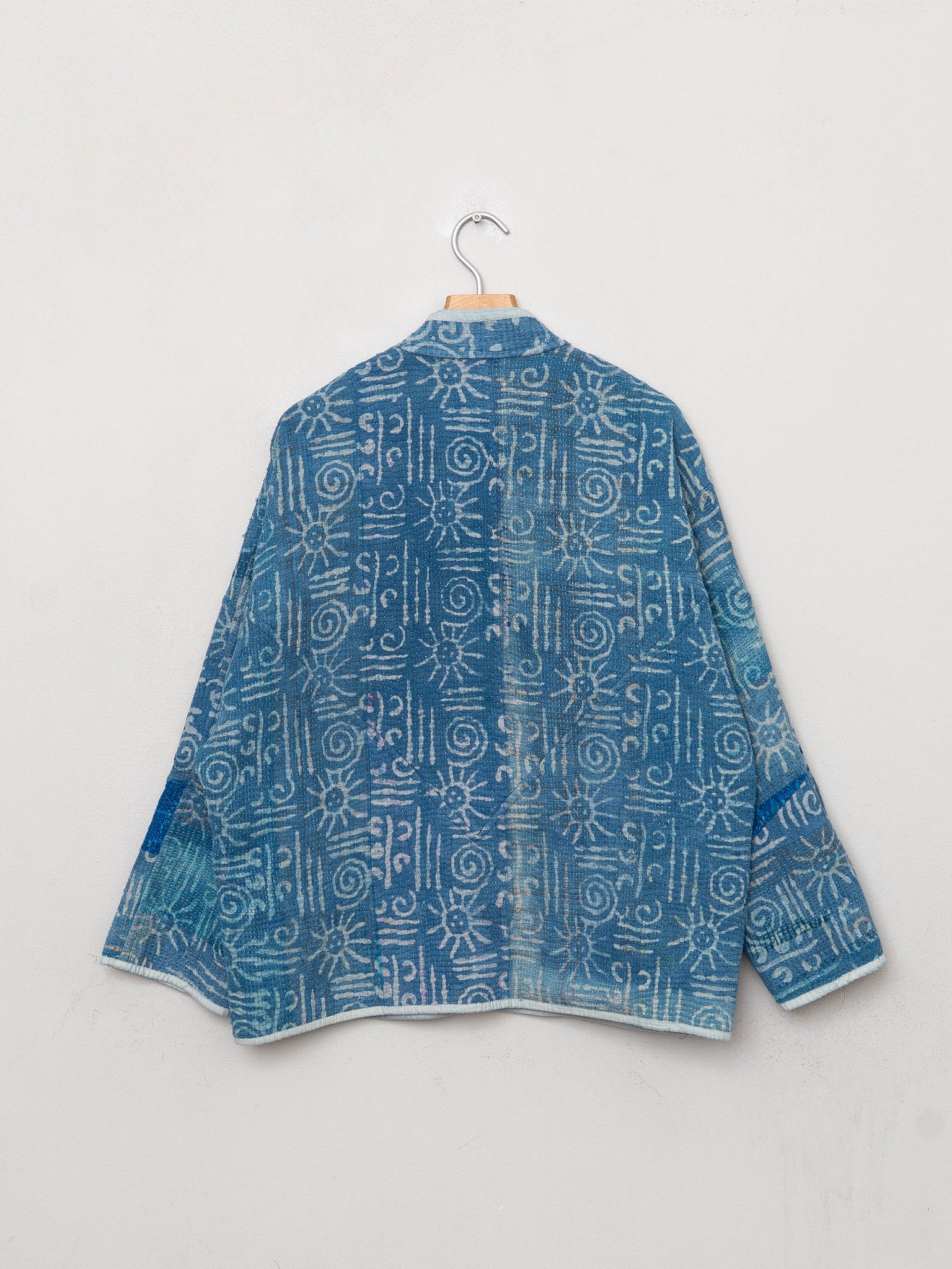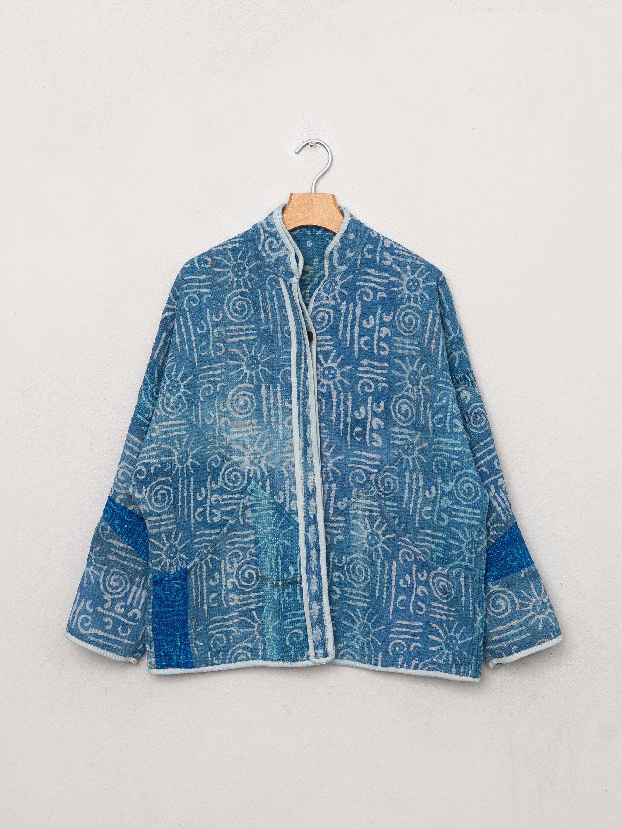 This Jacket features mud resist motifs dyed with plant based dyes over the Vintage Kantha textiles.