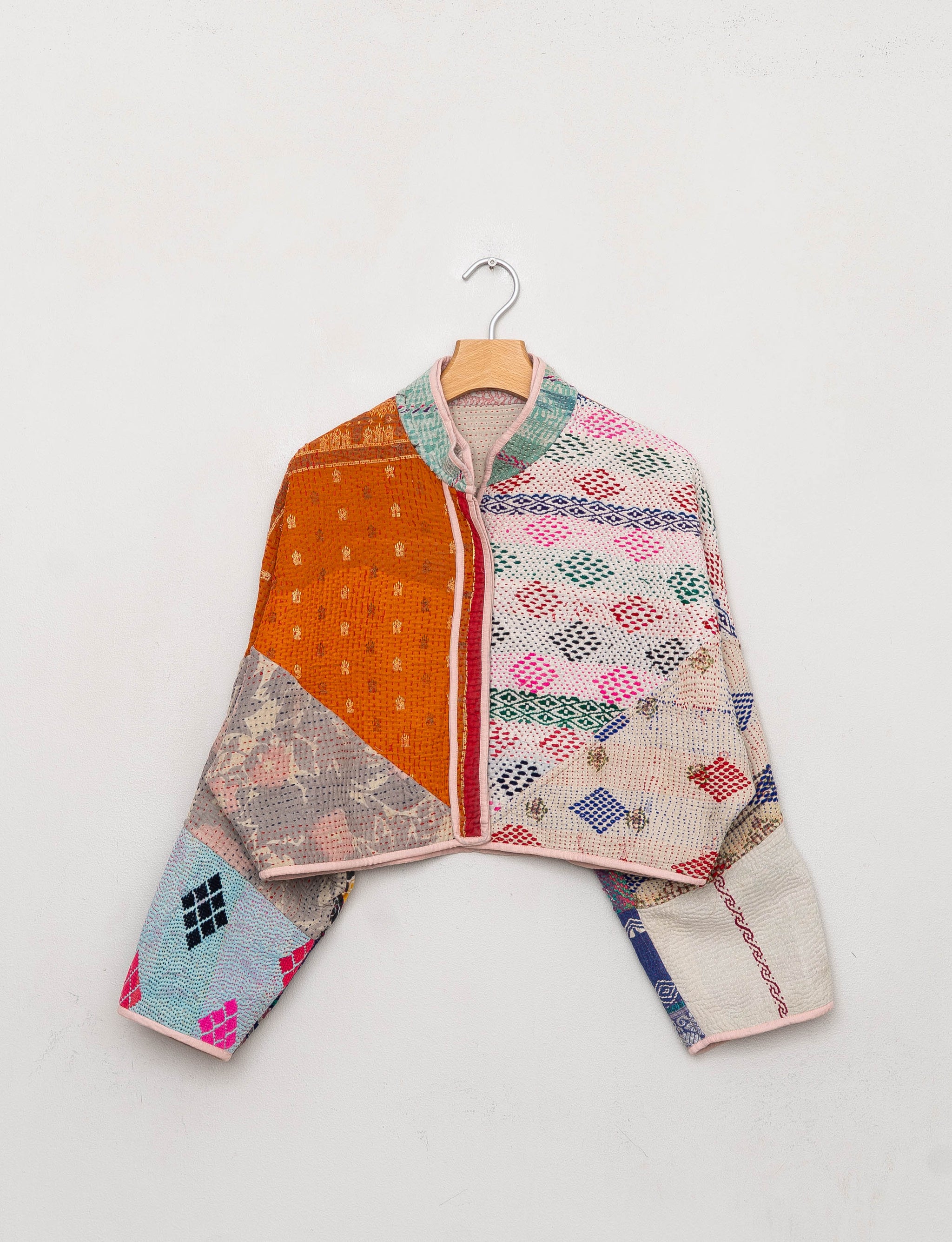 The Kaira Cropped Quilted Patchwork Kantha Jacket