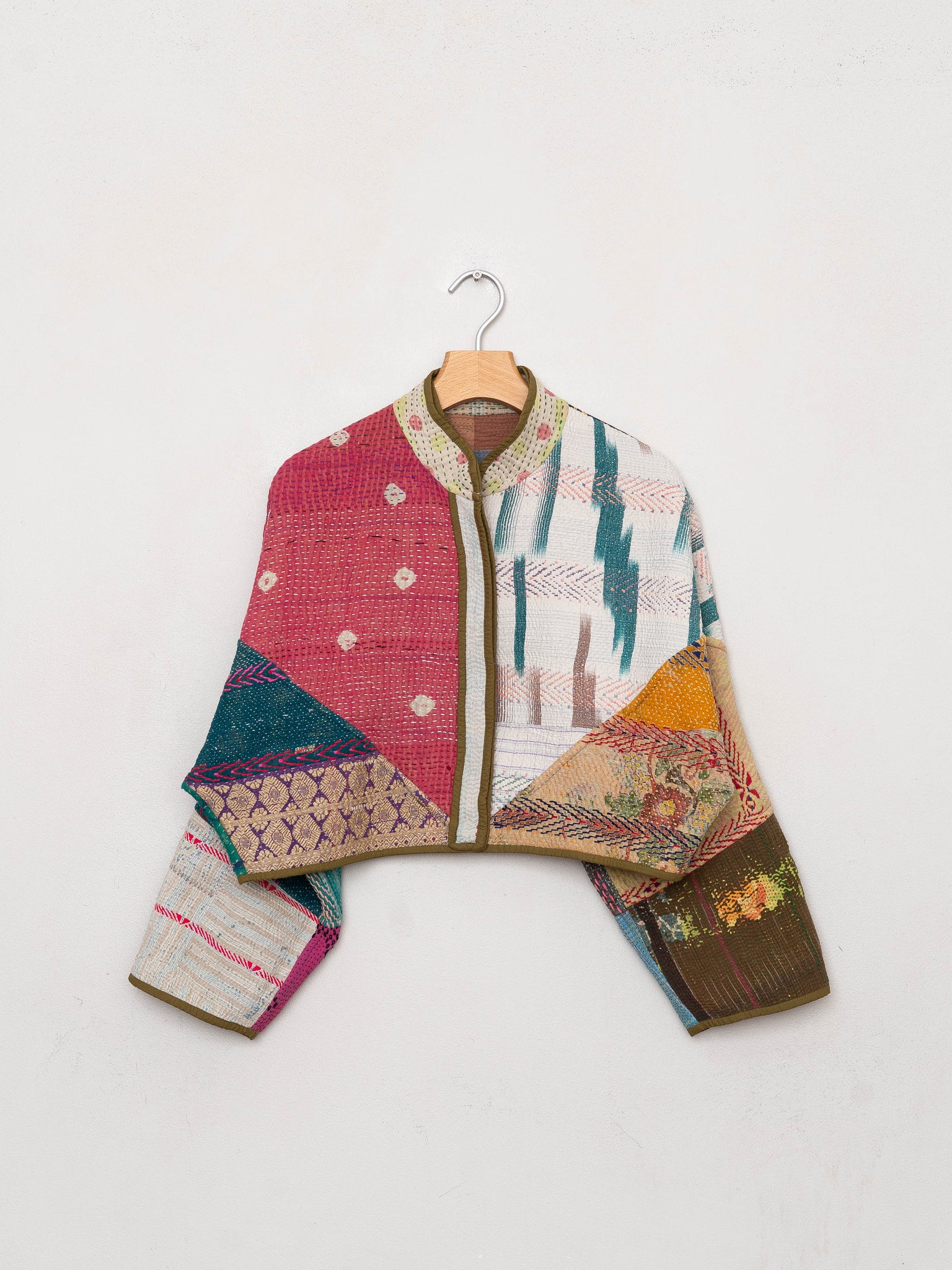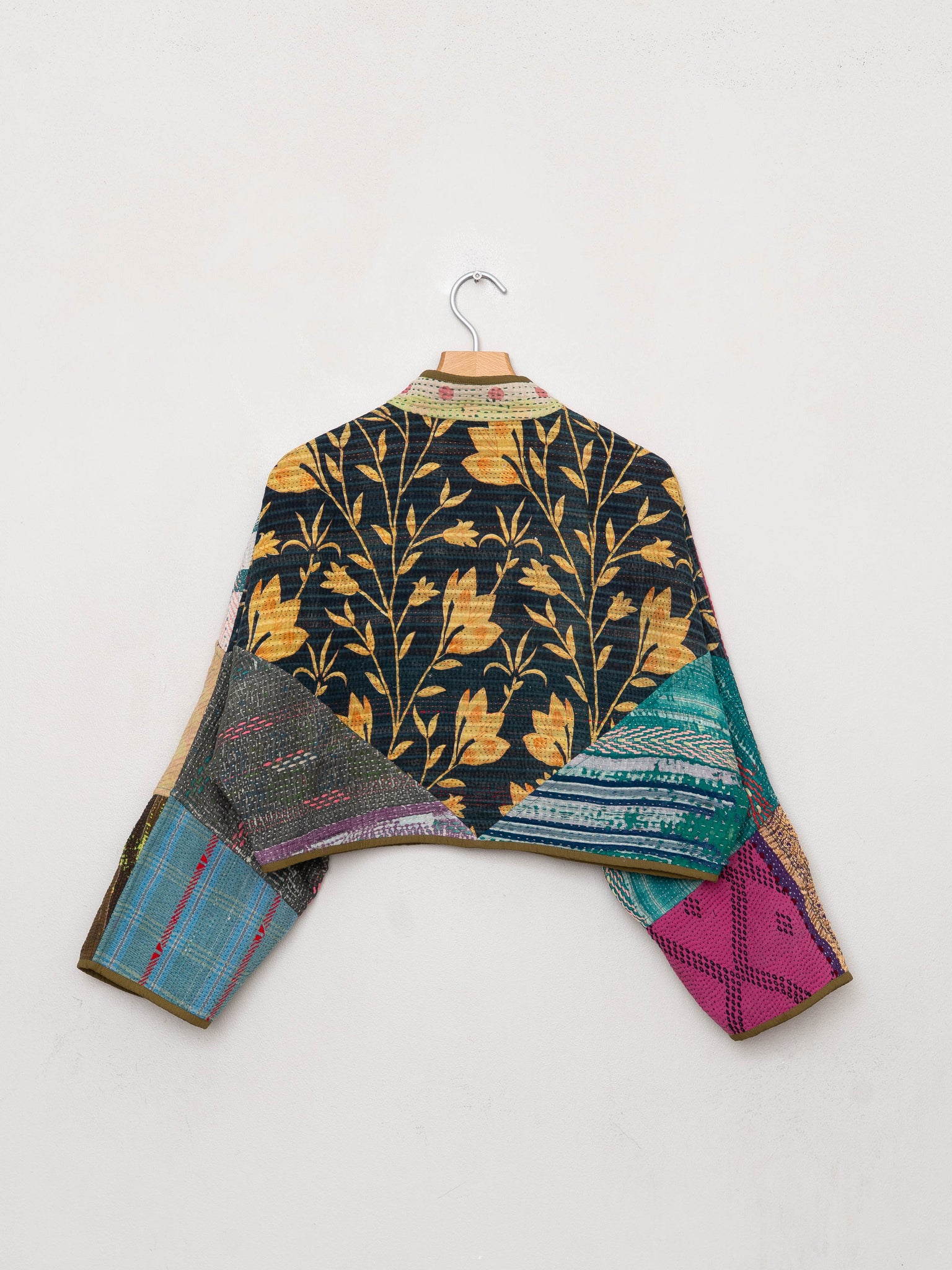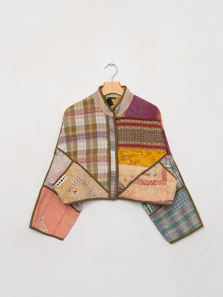 The Kaira Cropped Quilted Patchwork Kantha Jacket