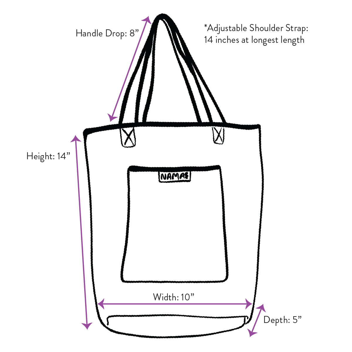 Adjustable Shoulder Strap: 14 inches (at longest length)