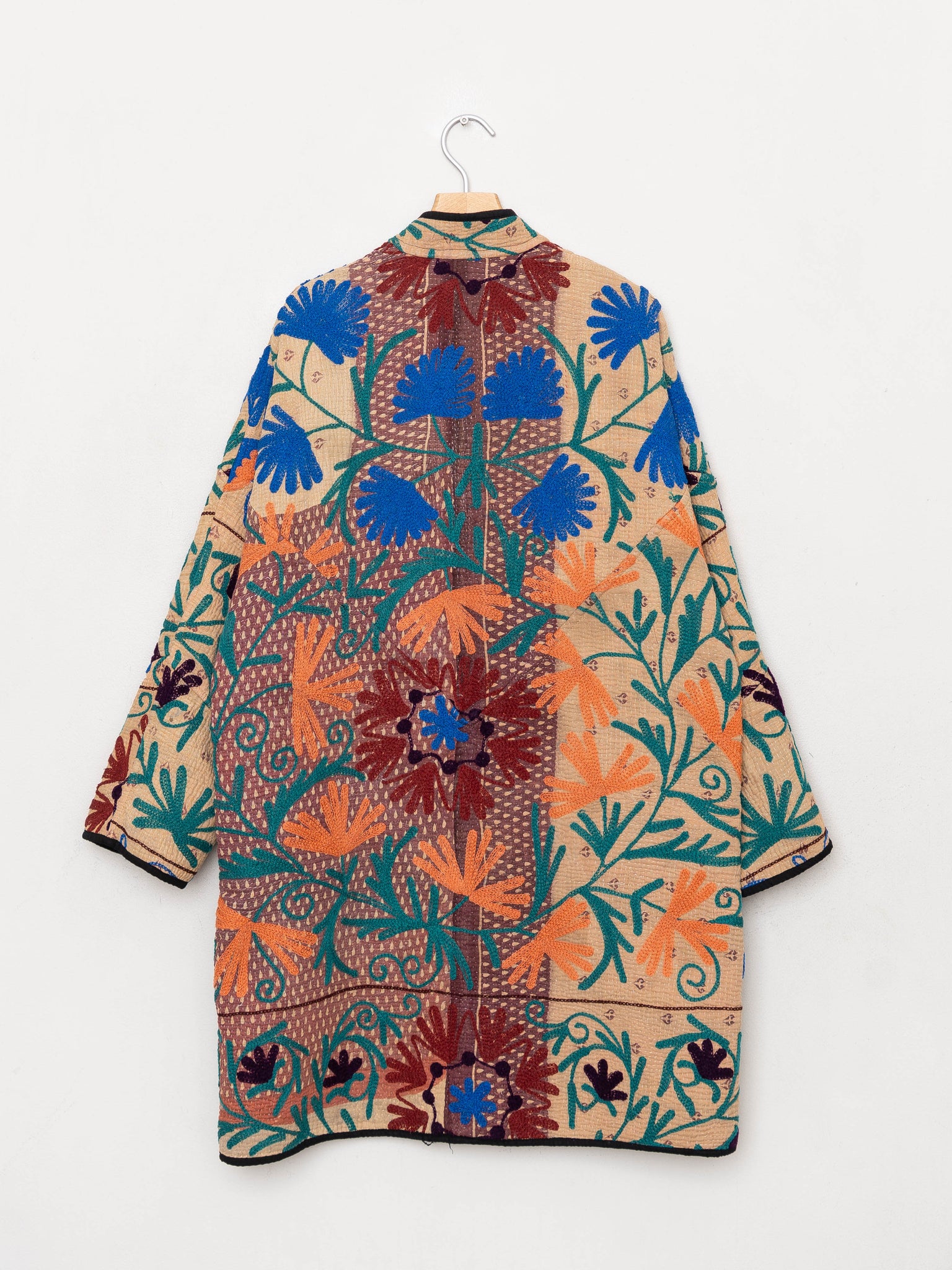 • Because each jacket is made from a different vintage Kantha quilt, the thickness and hand-feel naturally vary—some quilts feel lighter and more relaxed, while others have a slightly more structured feel. This variation is part of what makes each jacket one-of-a-kind.
