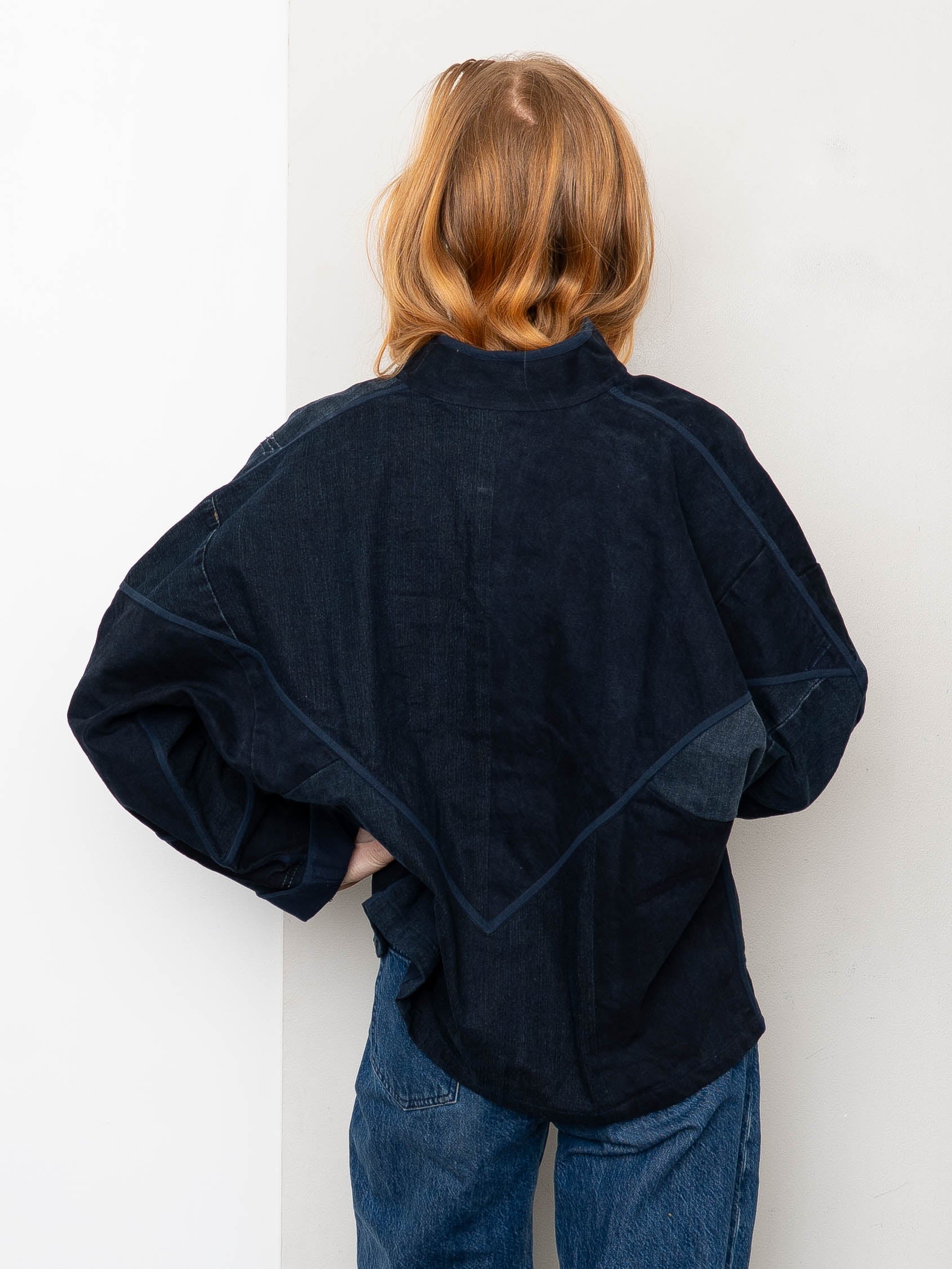 • All of our jackets are designed with an easy, oversized fit and the ladhiya Denim Jacket is made in three sizes. The size is listed in the product title.