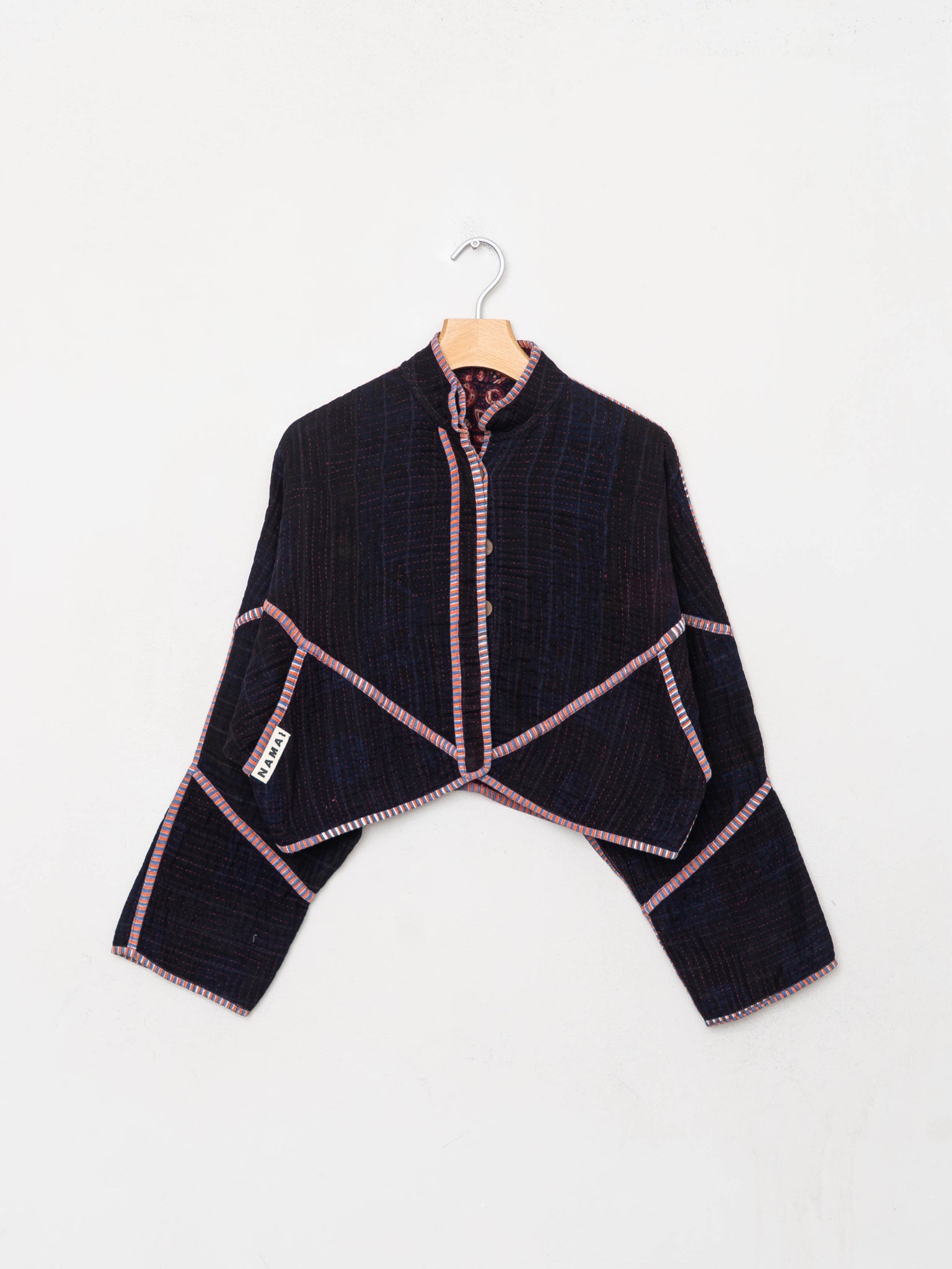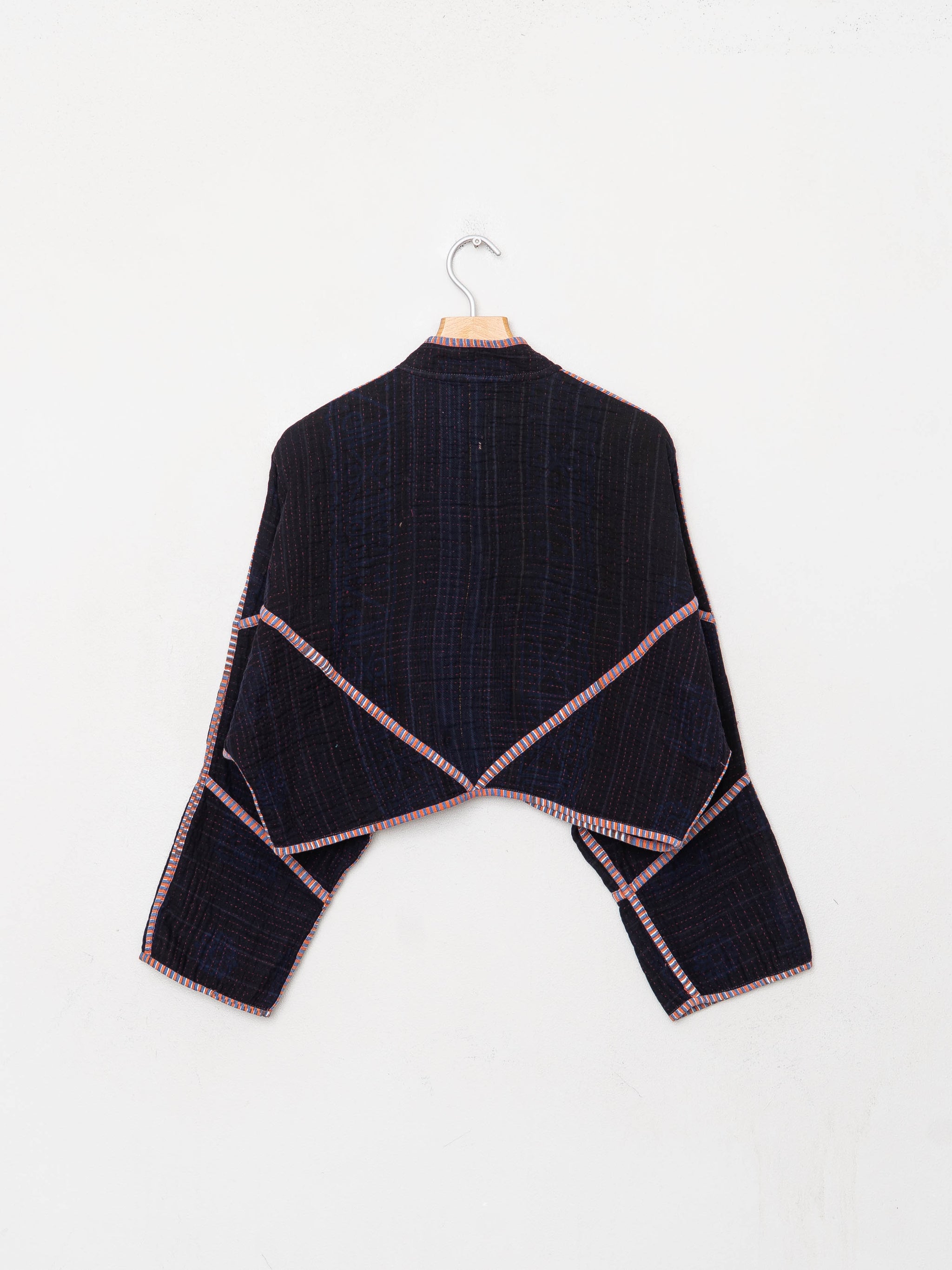The Kaira Cropped Quilted Indigo Kantha Jacket