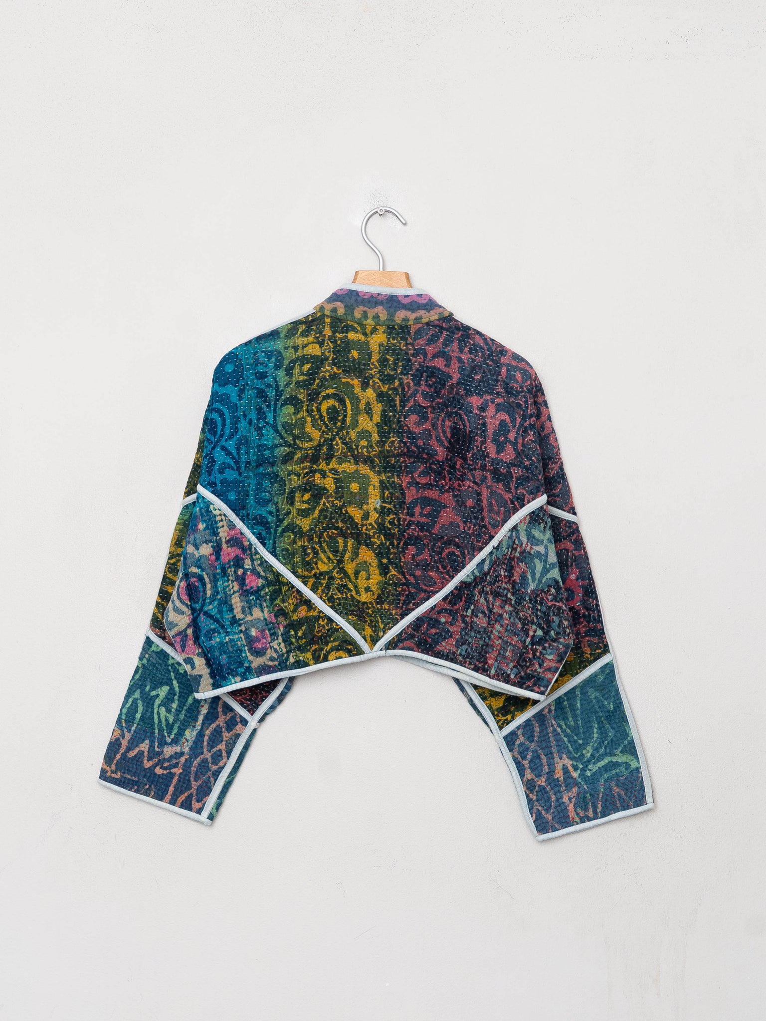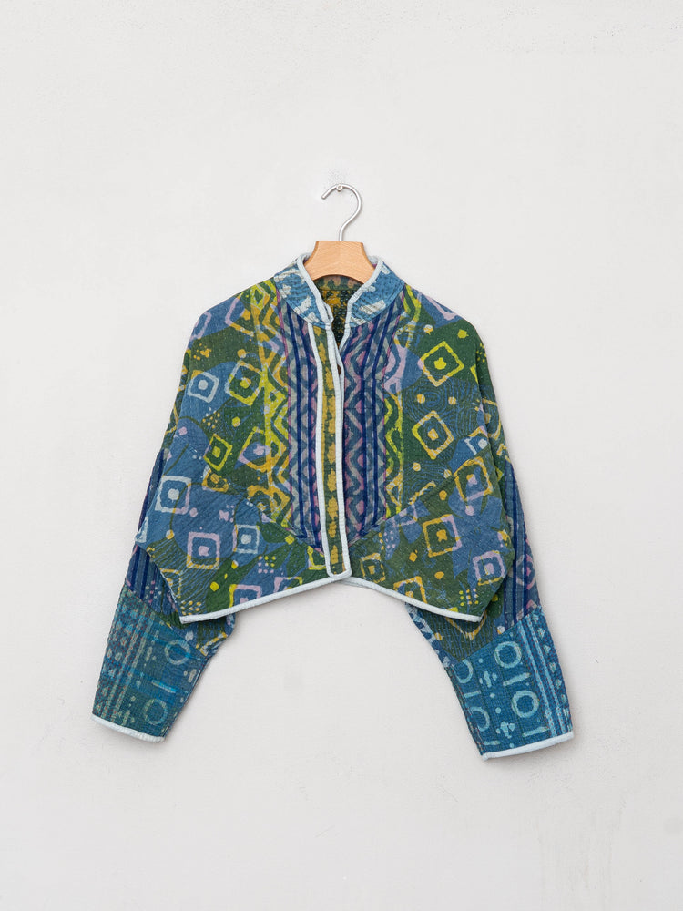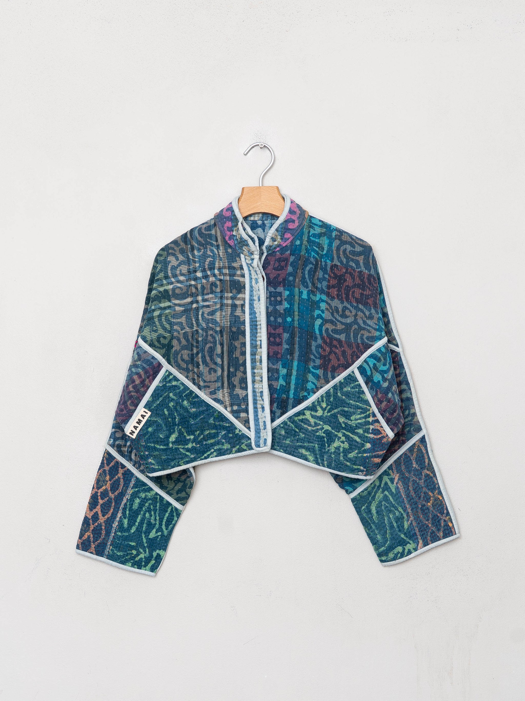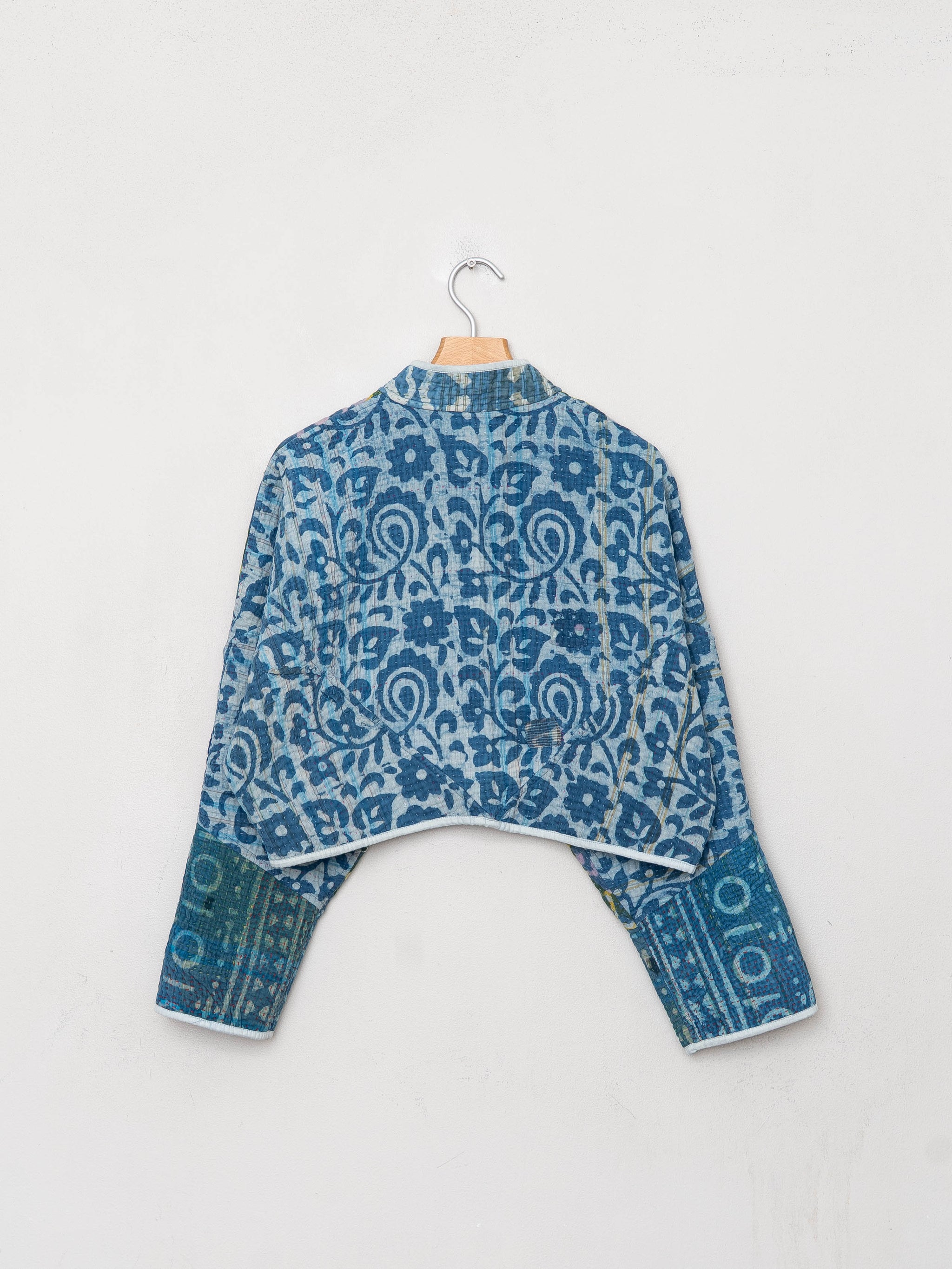 The Kaira Cropped Quilted Indigo Kantha Jacket