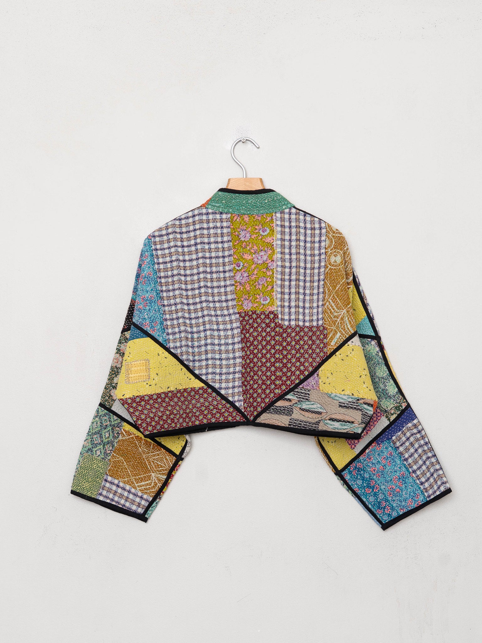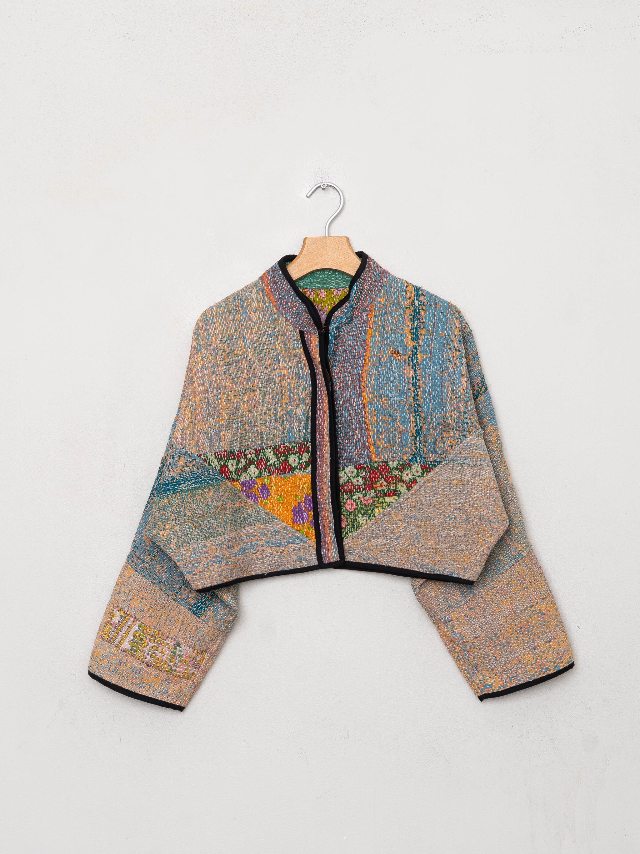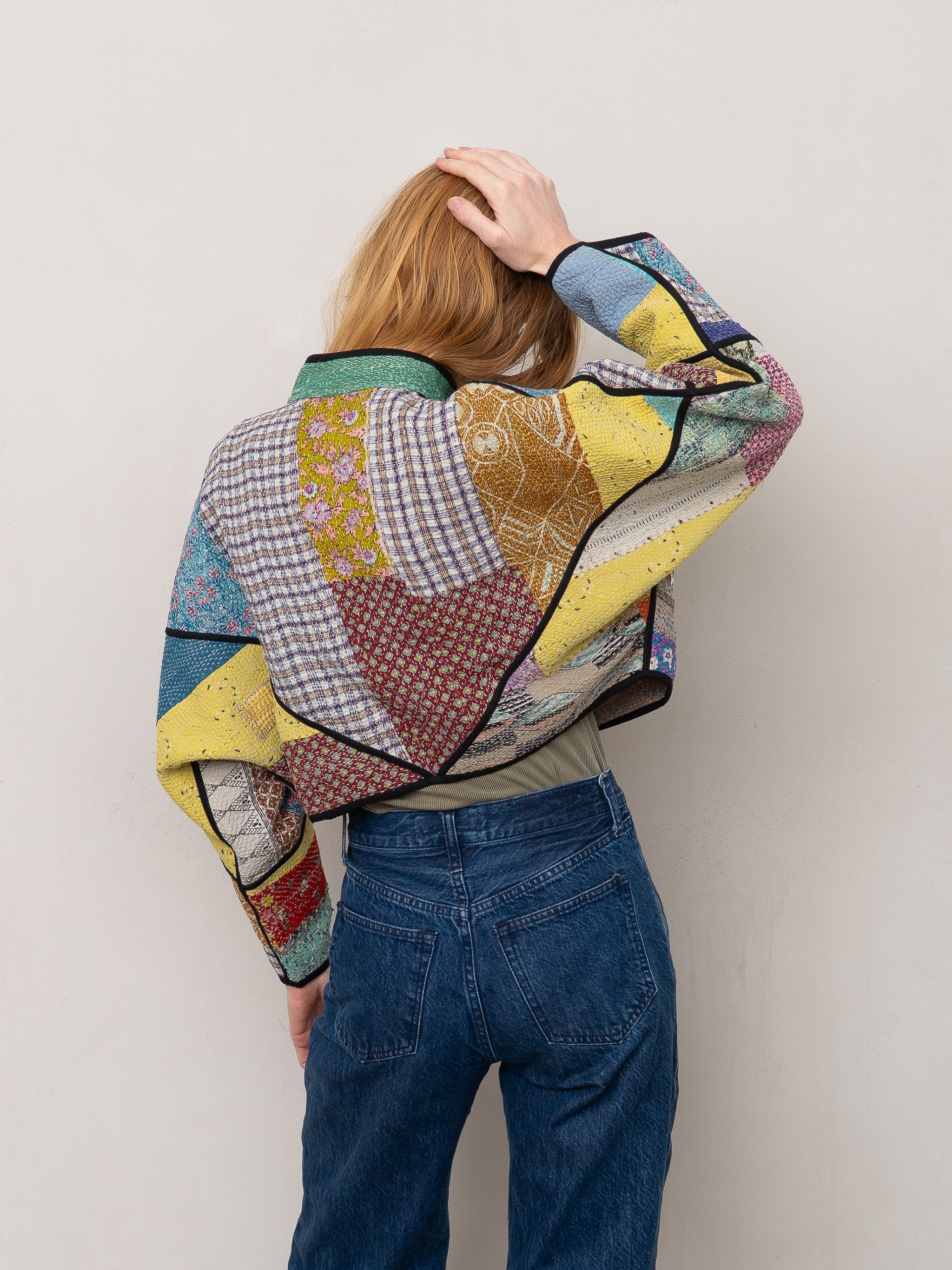 The Kaira Cropped Quilted Patchwork Kantha Jacket