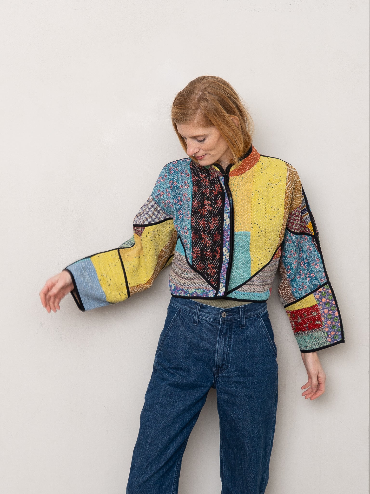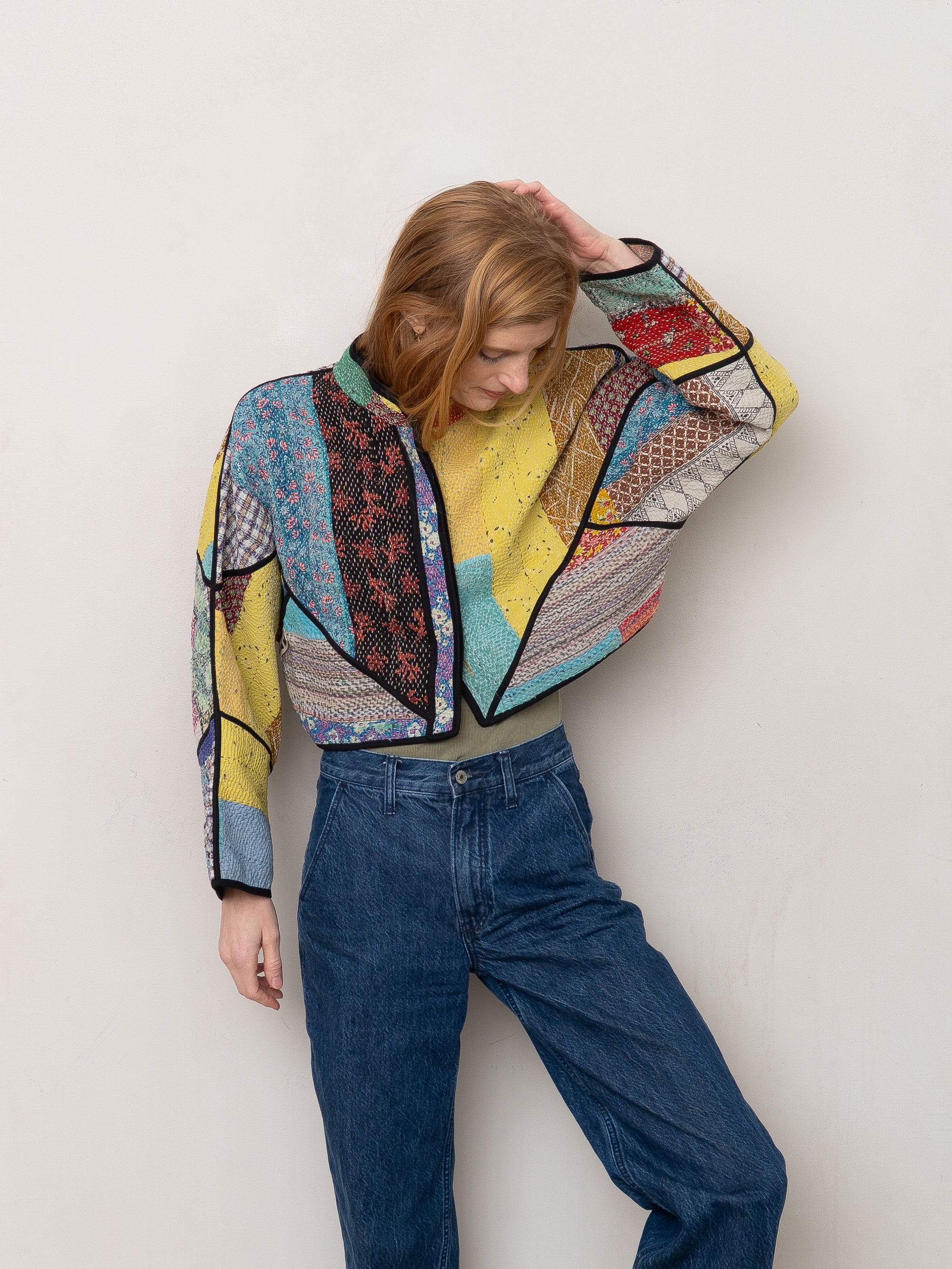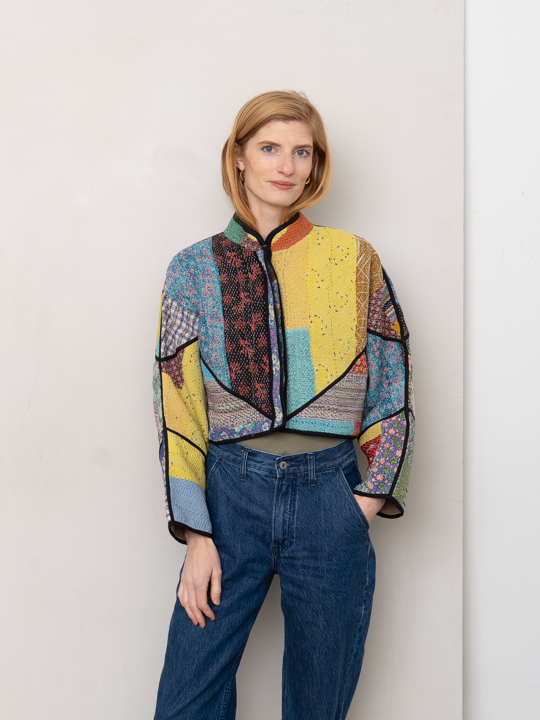 The Kaira Cropped Quilted Patchwork Kantha Jacket