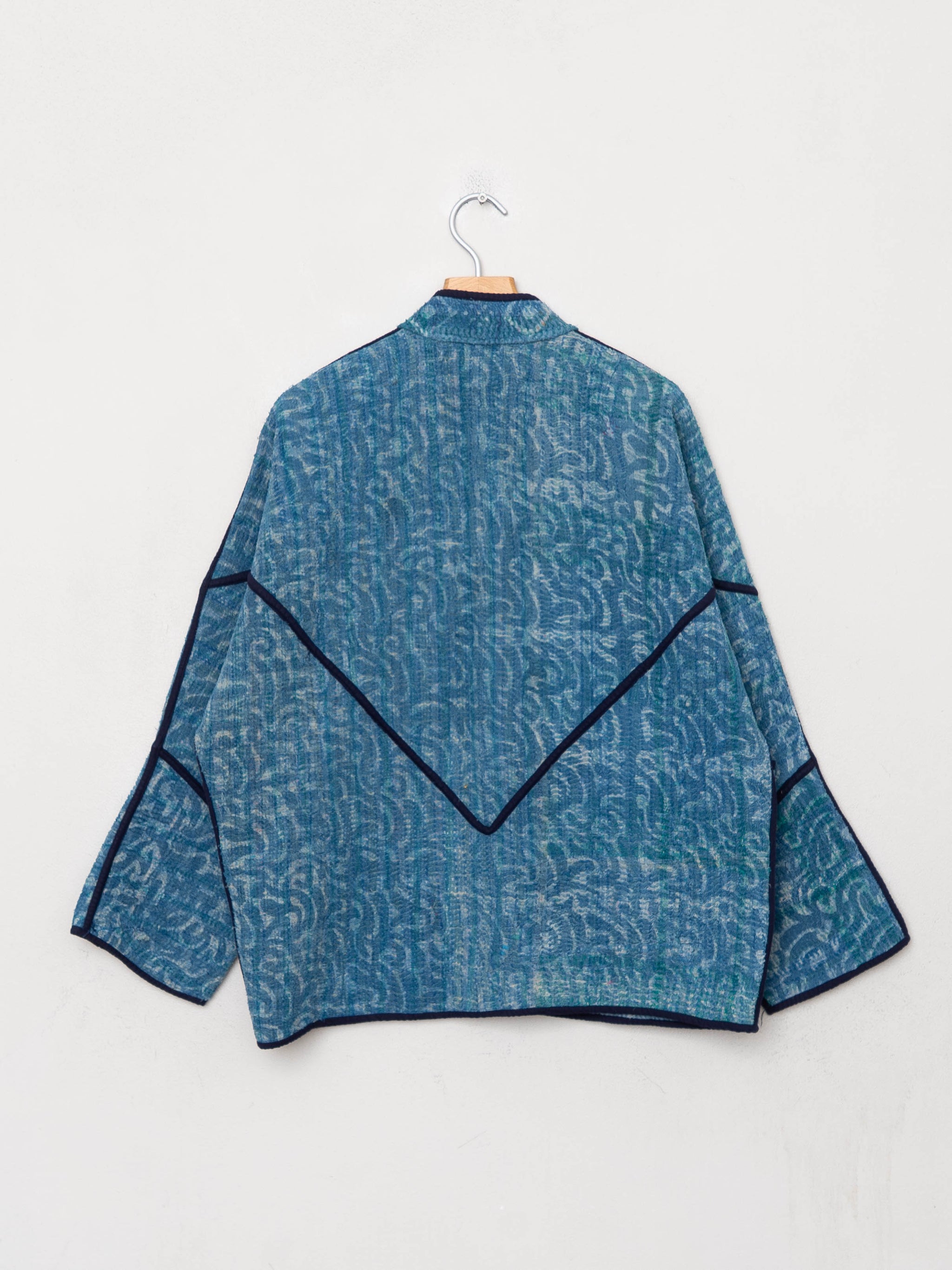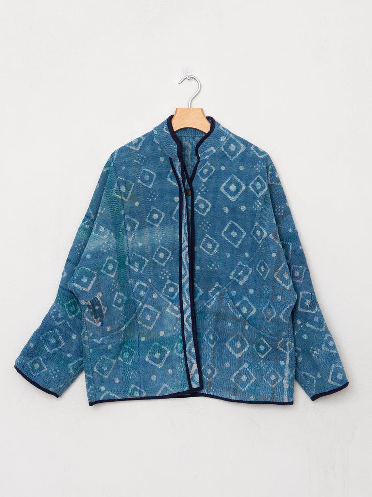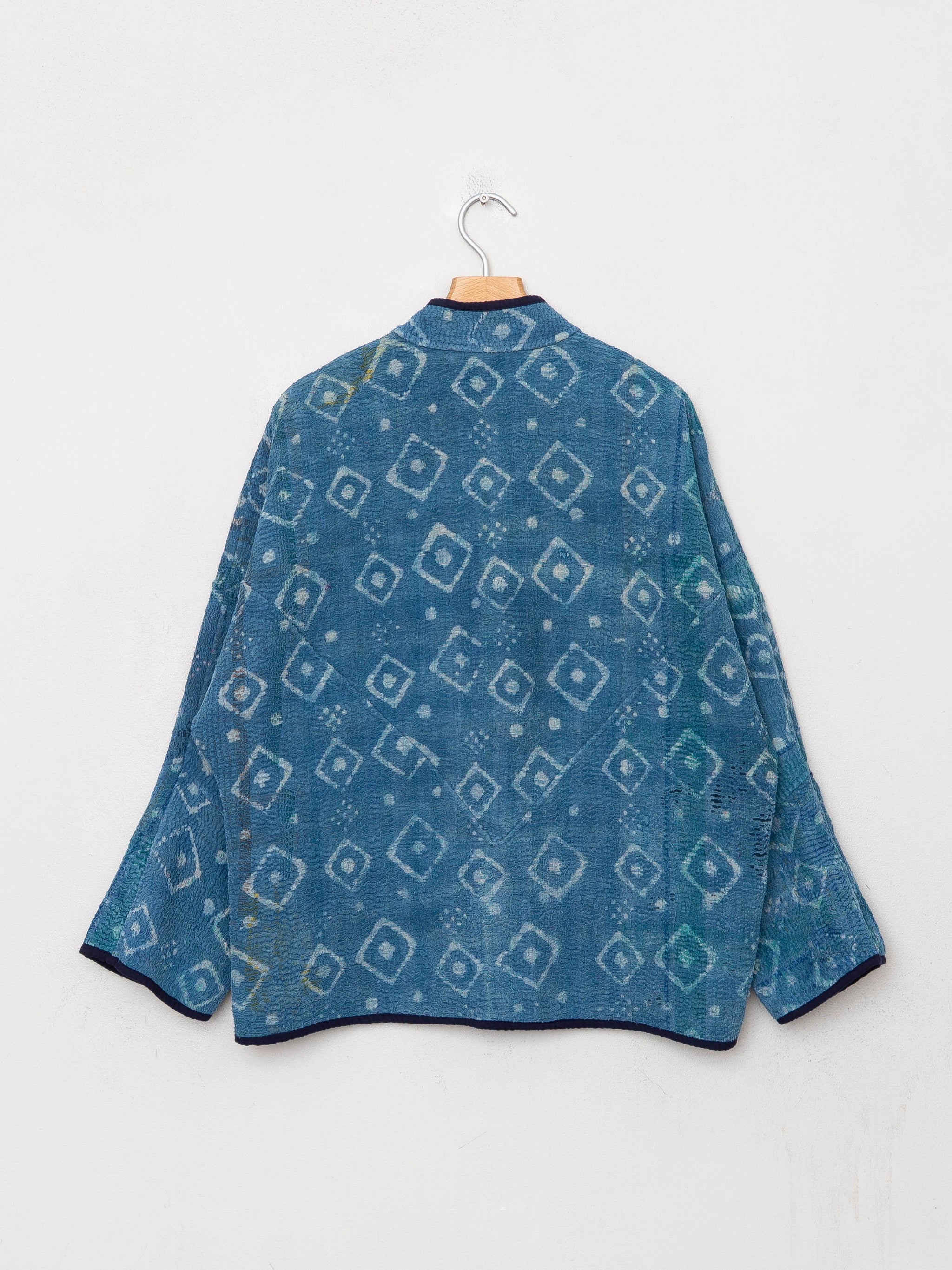 This Jacket features mud resist motifs dyed with plant based dyes over the Vintage Kantha textiles.