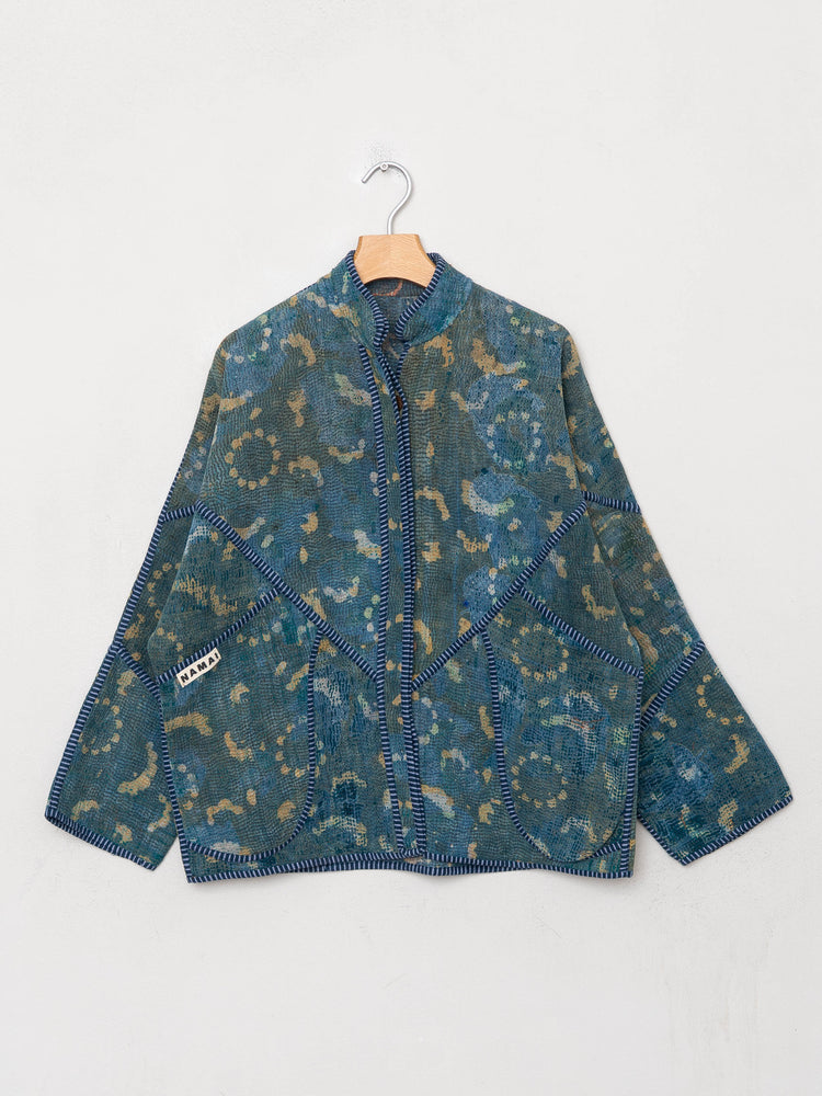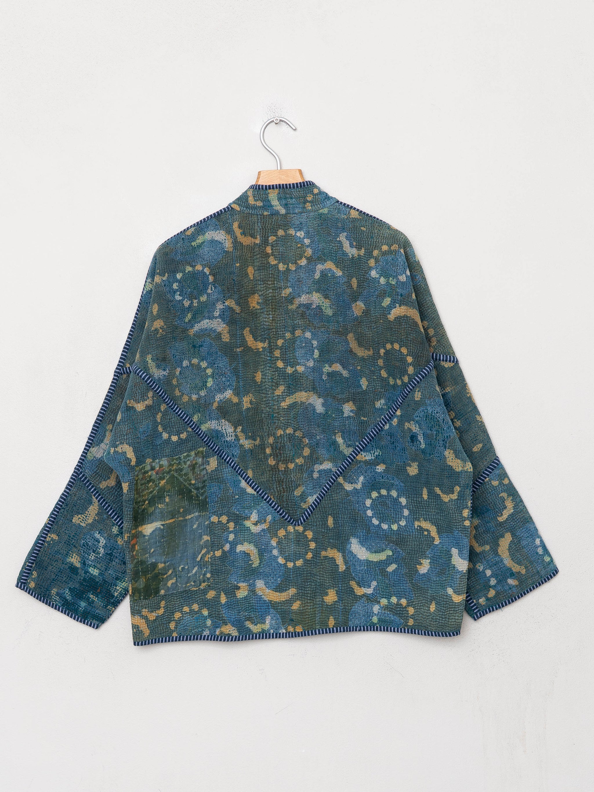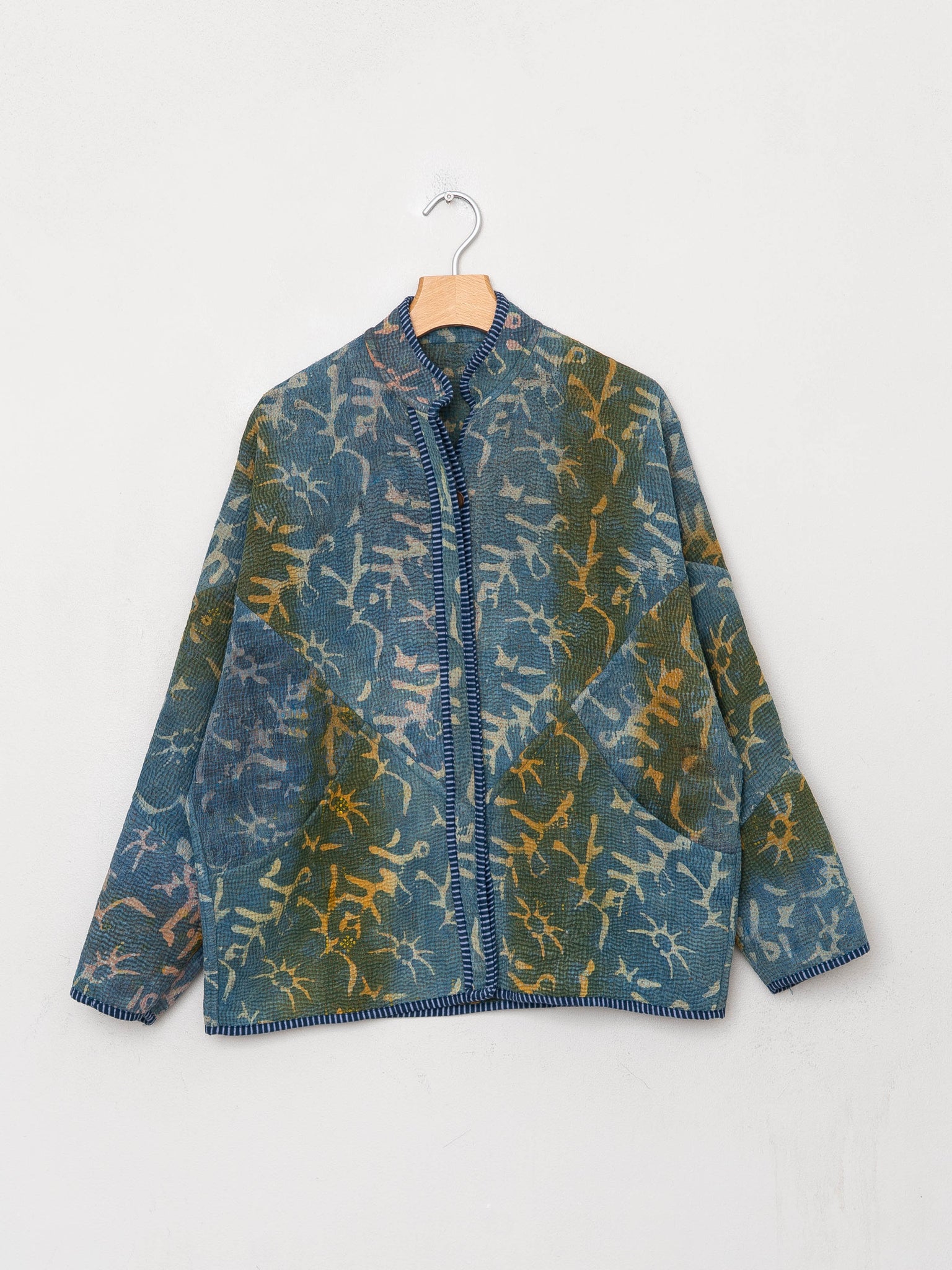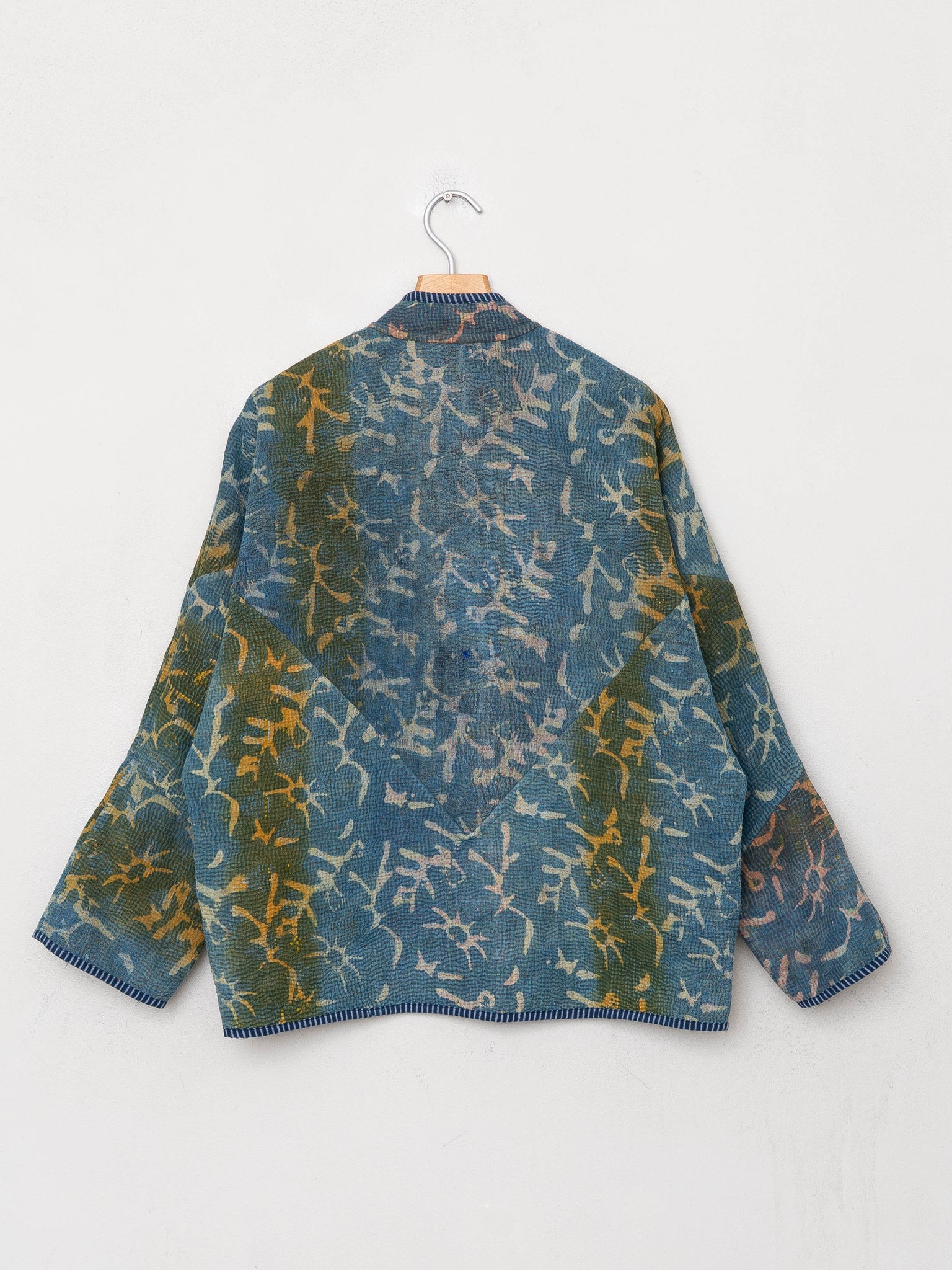 This Jacket features mud resist motifs dyed with plant based dyes over the Vintage Kantha textiles.