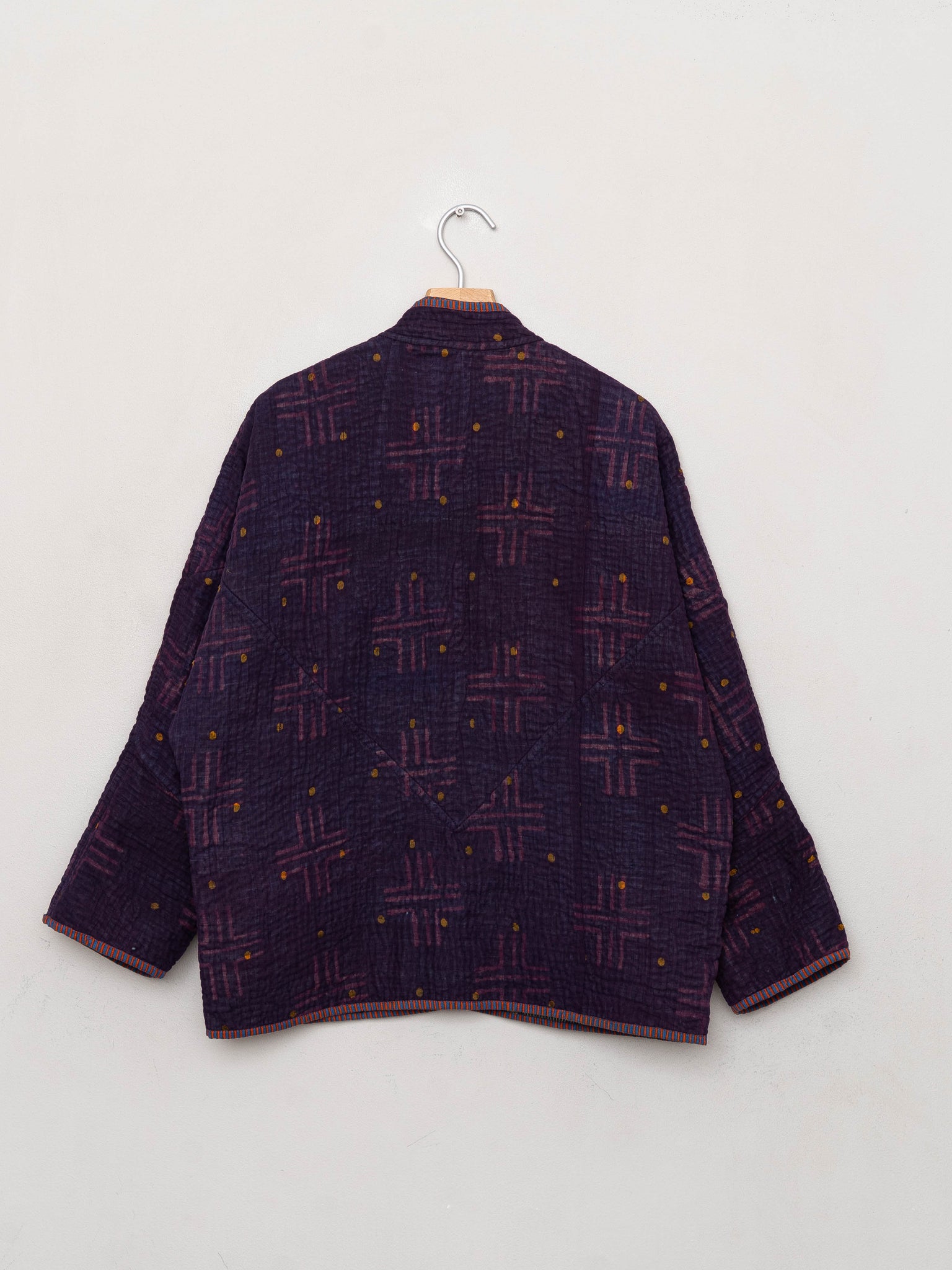 This Jacket features mud resist motifs dyed with plant based dyes over the Vintage Kantha textiles.